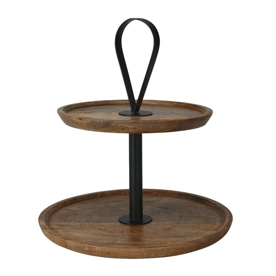 Predstavujeme vám elegantný stojan na torty z mango dreva, ktorý skvele doplní váš stôl a poteší vašich hostí. Kvalitné mango drevo s prírodnými textúrami dodáva každému kusu unikátny vzhľad. Moderný čierny kov vytvára dokonalý kontrast a zaisťuje stabilitu. Zaoblené hrany zaisťujú pevnosť a odolnosť.