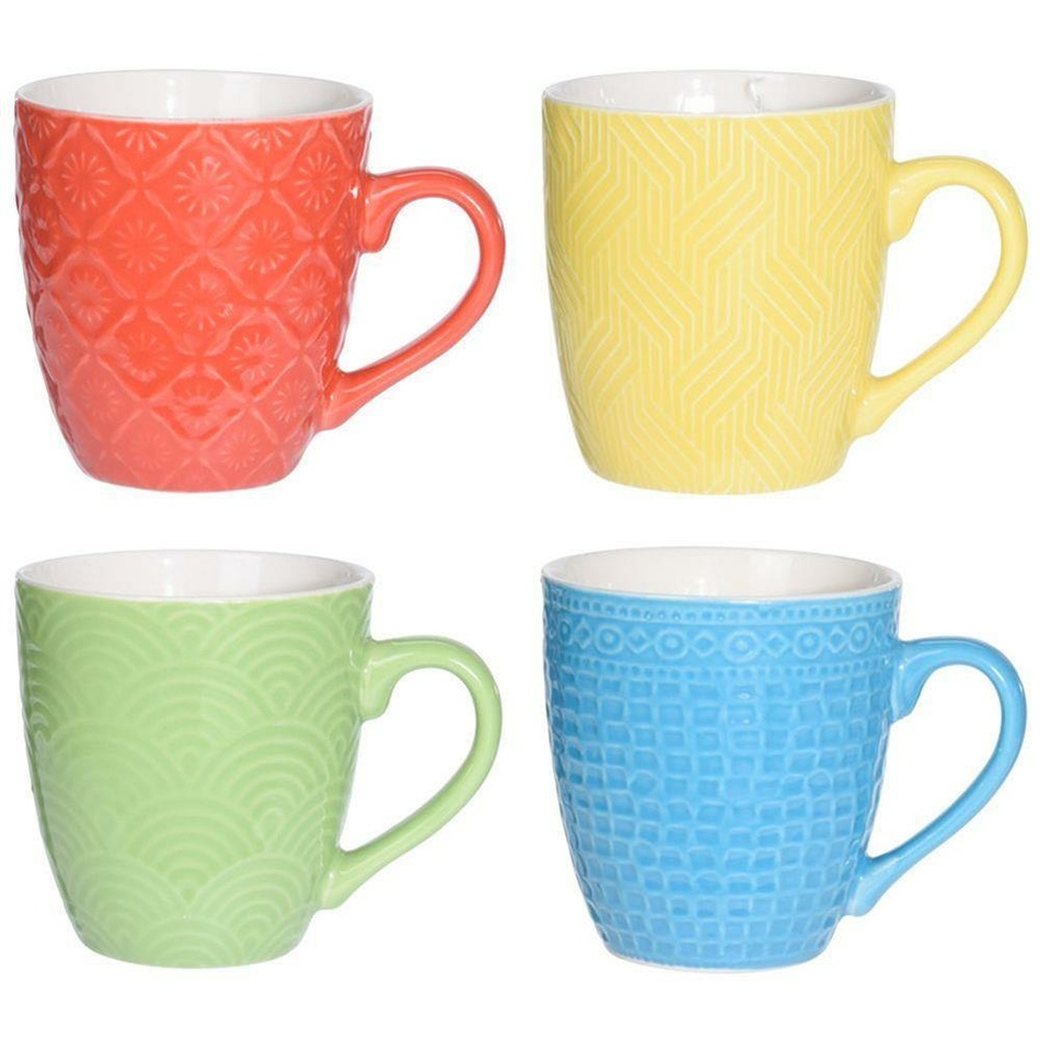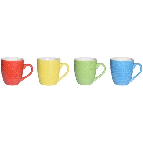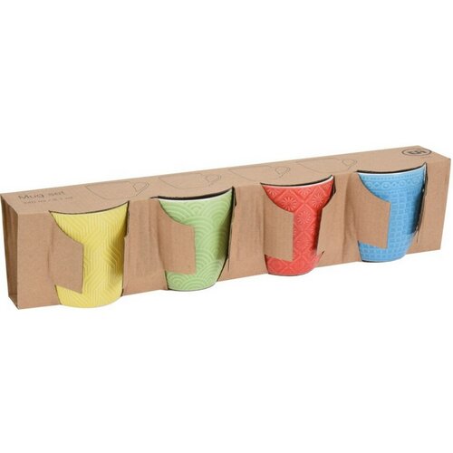 Vychutnajte si svoju kávu alebo čaj z týchto farebných hrnčekov. Sada obsahuje 4 hrnčekov v 4 rôznych farbách a s rôznymi dekormi. Hrnčeky sú vhodné na podávanie horúcich aj studených nápojov. Vďaka kvalitnému spracovaniu ich môžete umývať v umývačke alebo ohrievať v mikrovlnej rúre. Hrnčeky sú vo vnútri biele, farebné z vonkajšej strany.