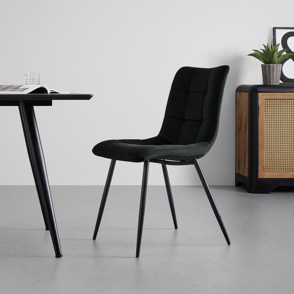 Tento tovar je k dispozícii IBA ONLINE. Táto elegantná čierna stolička je skvelým pútačom pozornosti a útulným sedadlom v mnohých obývacích priestoroch. Vďaka svojmu jednoduchému vzhľadu je možné veľkú stoličku s rozmermi približne 46 x 87 x 59 cm (Š x V x H) kombinovať do mnohých štýlov. Príjemne mäkký zamatový poťah zo 100% polyesteru dostane obzvlášť výrazný nádych vďaka dekoratívnemu prešívaniu a nápadnému kontrastnému prešívaniu na vonkajšej strane operadla. Kónické kruhové rúrkové nohy z čierneho kovu dodávajú stoličke stabilitu, zatiaľ čo penové čalúnenie zaisťuje optimálny komfort sedenia. Na stoličku s hĺbkou sedadla cca 42 cm je možné zaťažiť najviac 130 kg.Tento tovar sa nenachádza na našich predajniach. Objednať si ho môžete cez e-shop Möbelix.