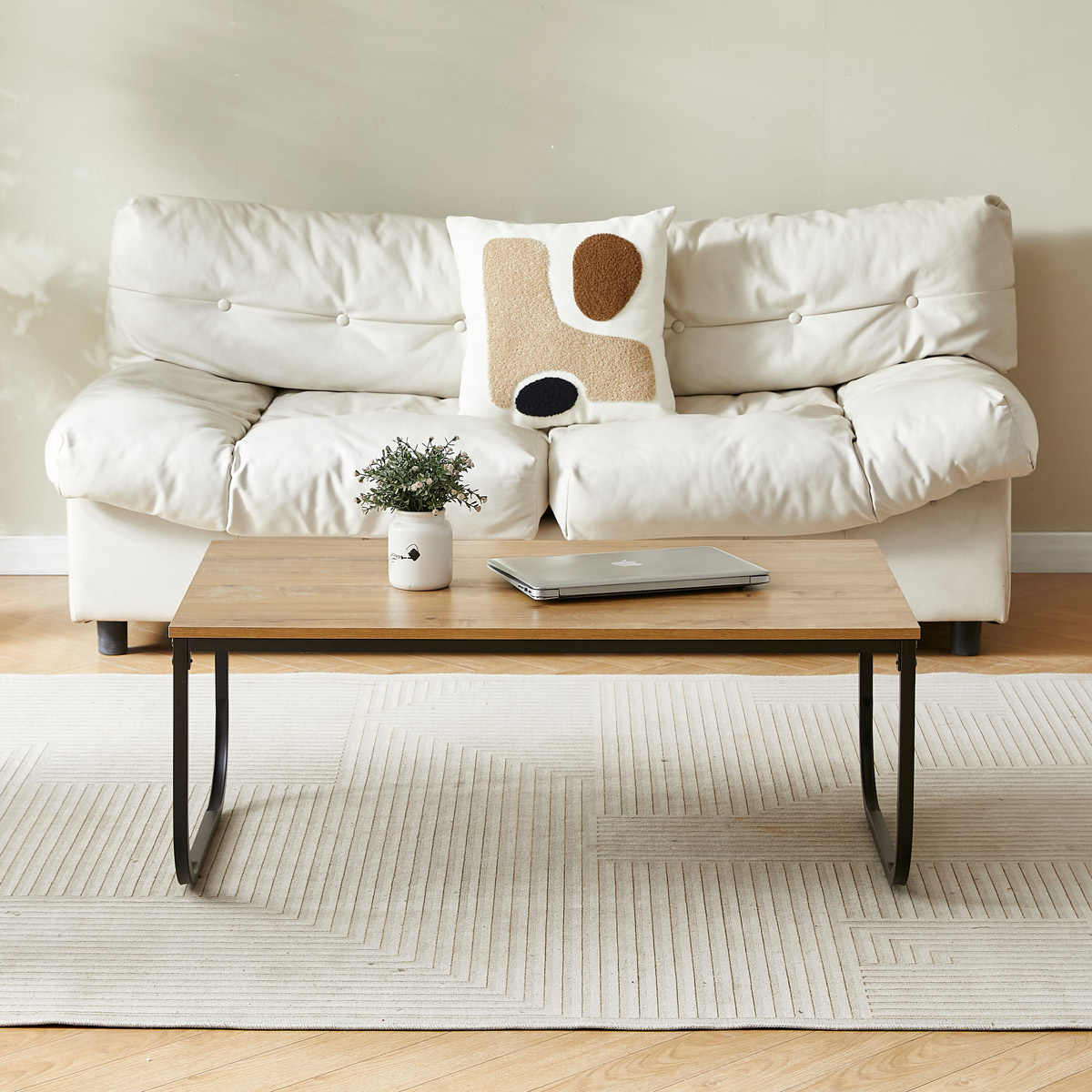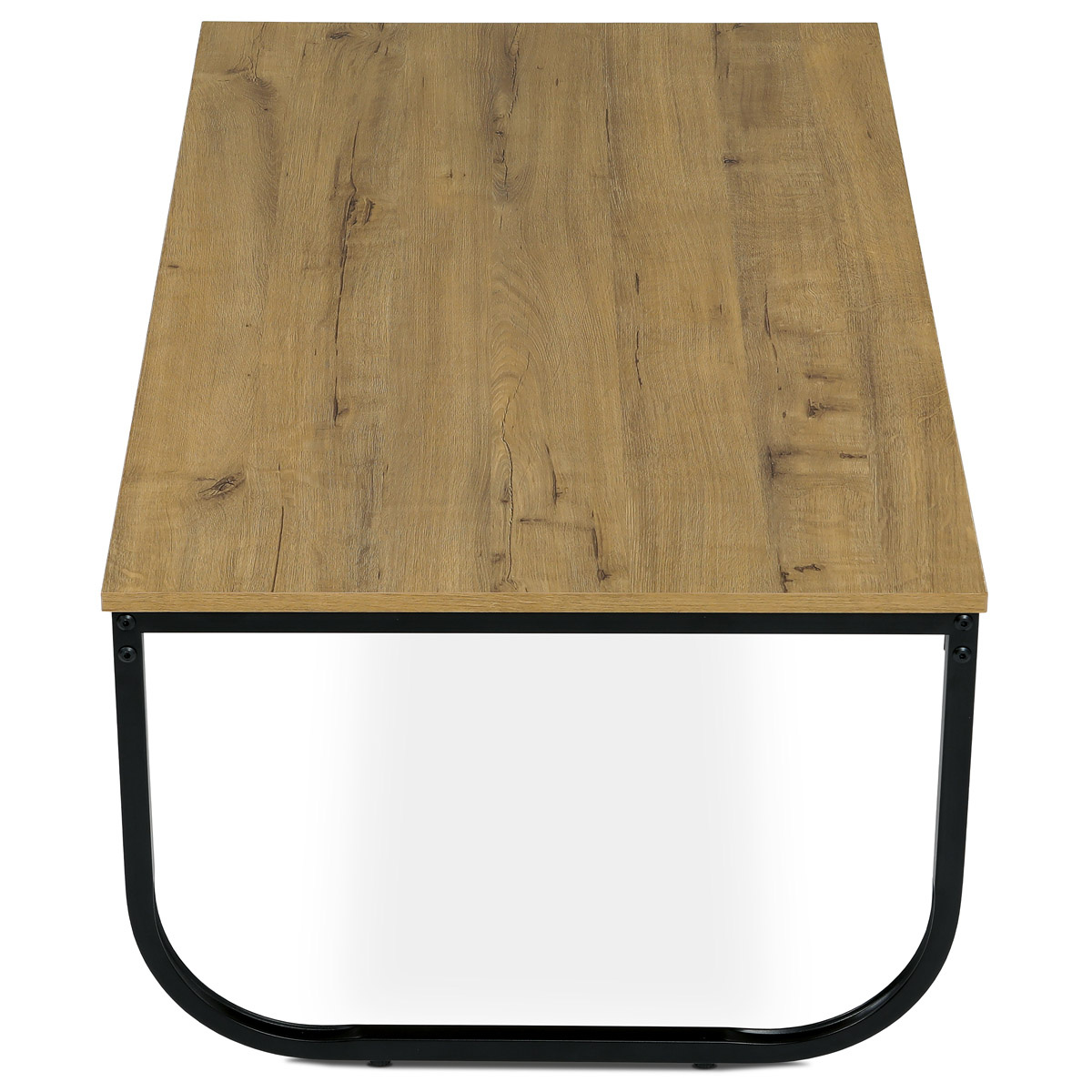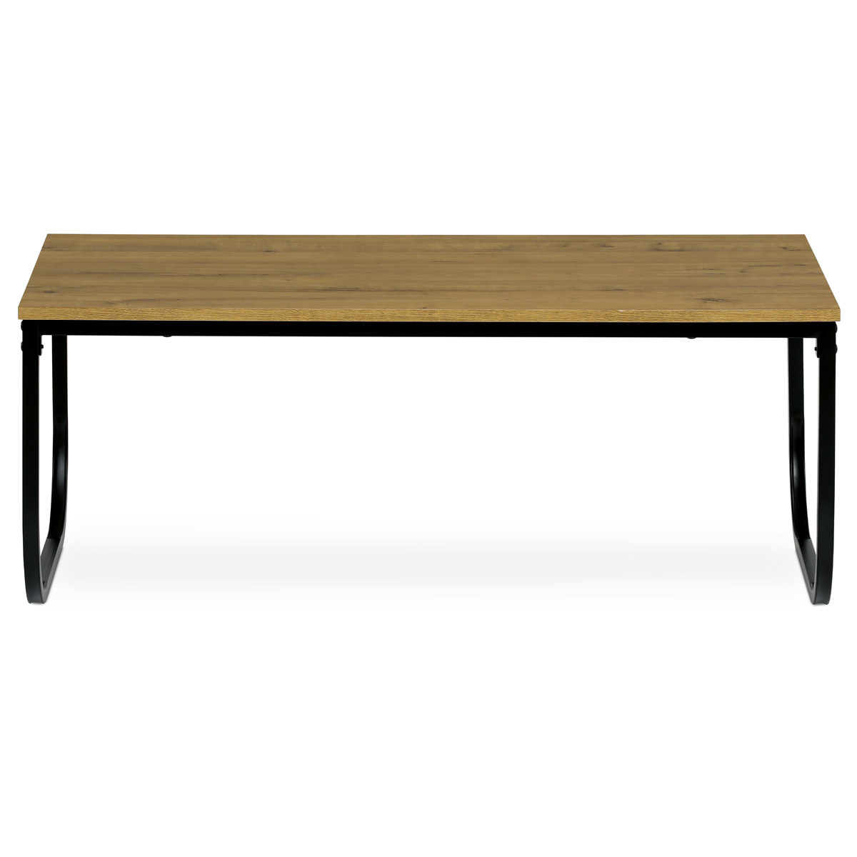 Oživte svoju domácnosť aj kanceláriu týmto konferenčným stolom v industriálnom dizajne. Doska MDF v dekore divokého duba poskytuje dostatok priestoru na pracovné schôdzky či coffee break. Čierne kovové nohy s elegantným zakrivením zaisťujú optimálnu stabilitu a tvoria výrazný kontrast k prírodnej doske. Dodávané demontované.Technické parametre: