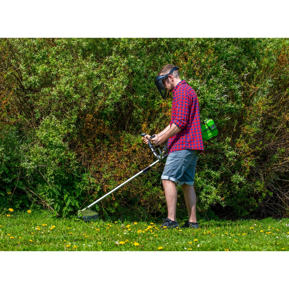 Akumulátorový krovinorez značky FIELDMANN si poradí nielen s každou vysokou trávou, ale poradí si aj s krovinami a slabšími náletmi. Krovinorez dosahuje dostatočný výkon vďaka plnému využitiu sily 2 x 20 V akumulátora v spojení s elektronickou riadiacou jednotkou. O komfortnú prácu sa okrem mäkčeného držadla a dvojitej ergonomickej rukoväte stará tiež praktický ramenný popruh.V balení nájdete tiež trojzubý vyžínací kotúč (230 mm) a strunovú hlavu (330 mm). Motor umiestnený pri hlave vyvažuje batéria na konci spojovacej tyče, takže sa s krovinorezom výborne manipuluje. Je možné použiť akumulátory s kapacitou 2Ah/4Ah ktoré sú kompatibilné do všetkých výrobkov spoločnosti FIELDMANN radu FAST POWER 20 V. Batéria a nabíjačka nie sú súčasťou balenia. Na chod tohto stroja sú potrebné vždy dva akumulátory rovnakej kapacity.Technické parametre: