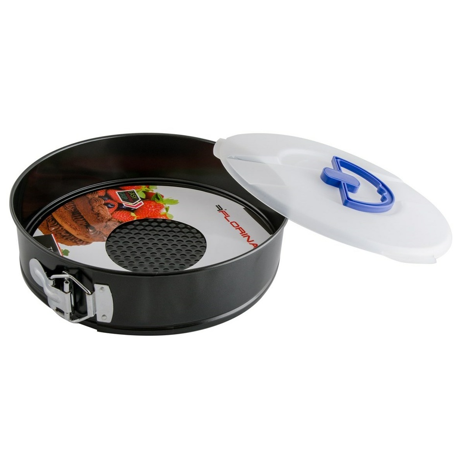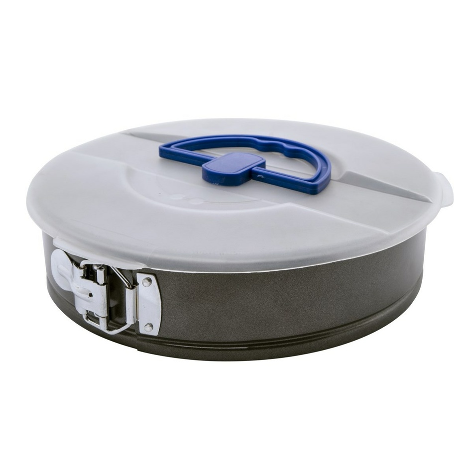 Tortovú forma s plastovým vekom a rukoväťou oceníte pri prenášaní torty napr. Na rodinnú oslavu. Uzavretie a stiahnutie „obruče“ na pracku, zaisťuje bezproblémové vybratie pečeného korpusu. Plastové veko zaisťuje uzatvorenie formy a rukoväť je praktická pri prenášaní. Forma na tortu je vyrobená s vysoko kvalitným antiadhéznym povrchom z uhlíkovej ocele.