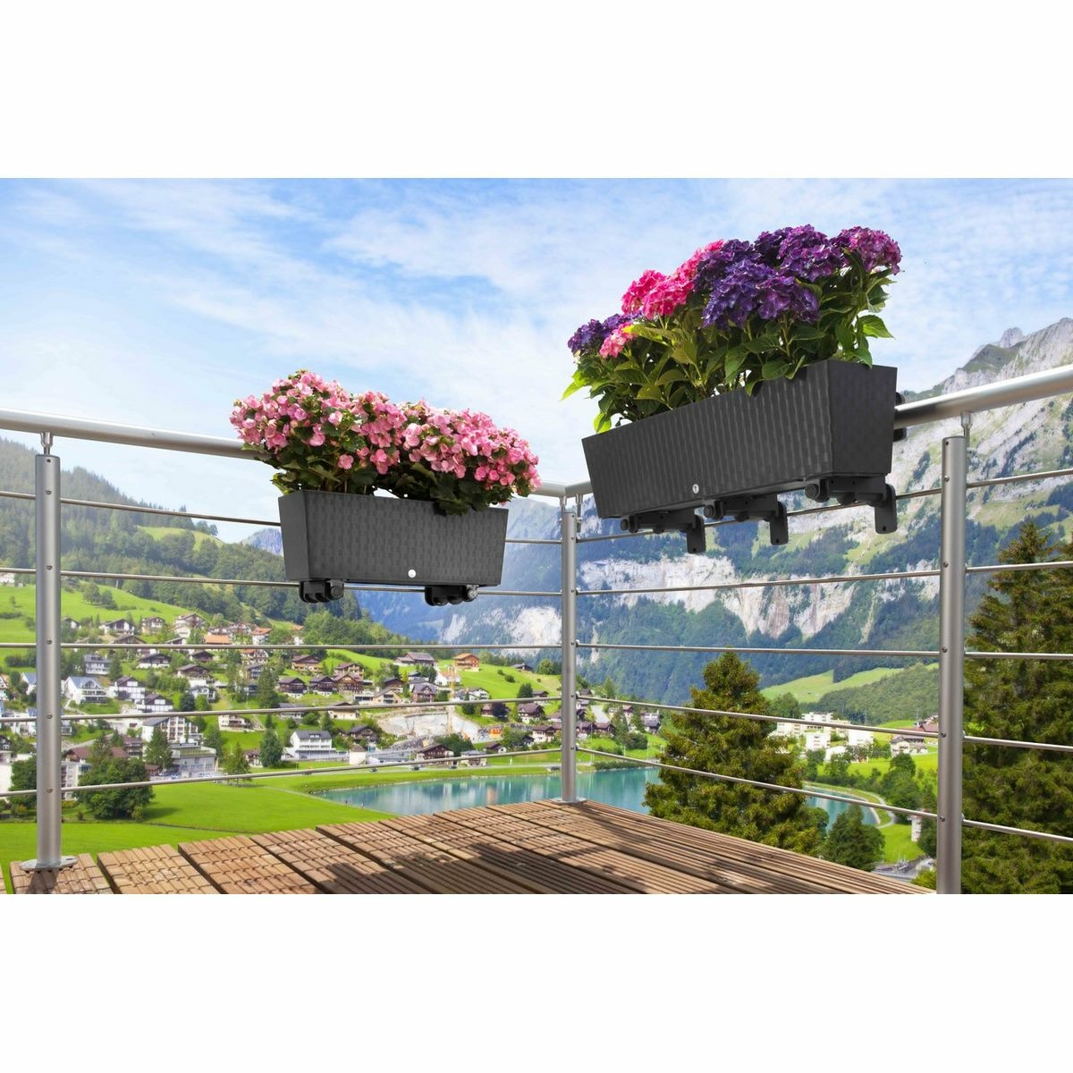 Tento dizajnový truhlík má zavlažovací systém Aqua, vďaka ktorému je vlaha rastlinám postupne dodávaná zo spodného zásobníka na dne. Nenalieva sa priamo do zeminy, ale zo strany do zavlažovacieho otvoru. Na dne truhlíka môžete vyvŕtať prepadový odtok.