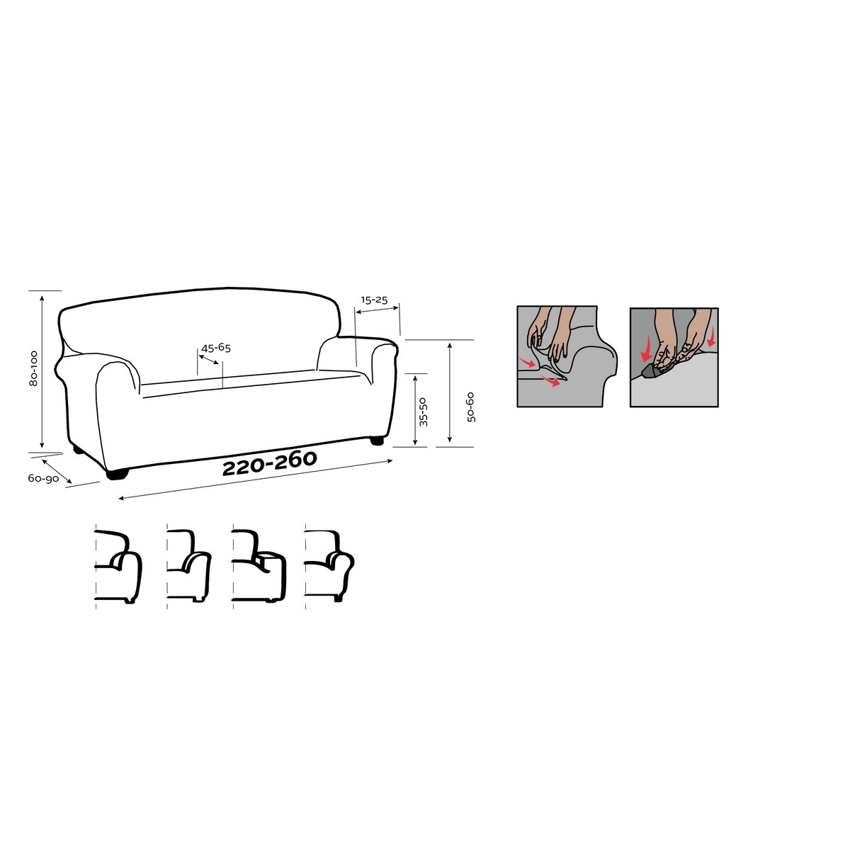 výška zadnej časti sedačky a kresla: 80 – 100 cm
