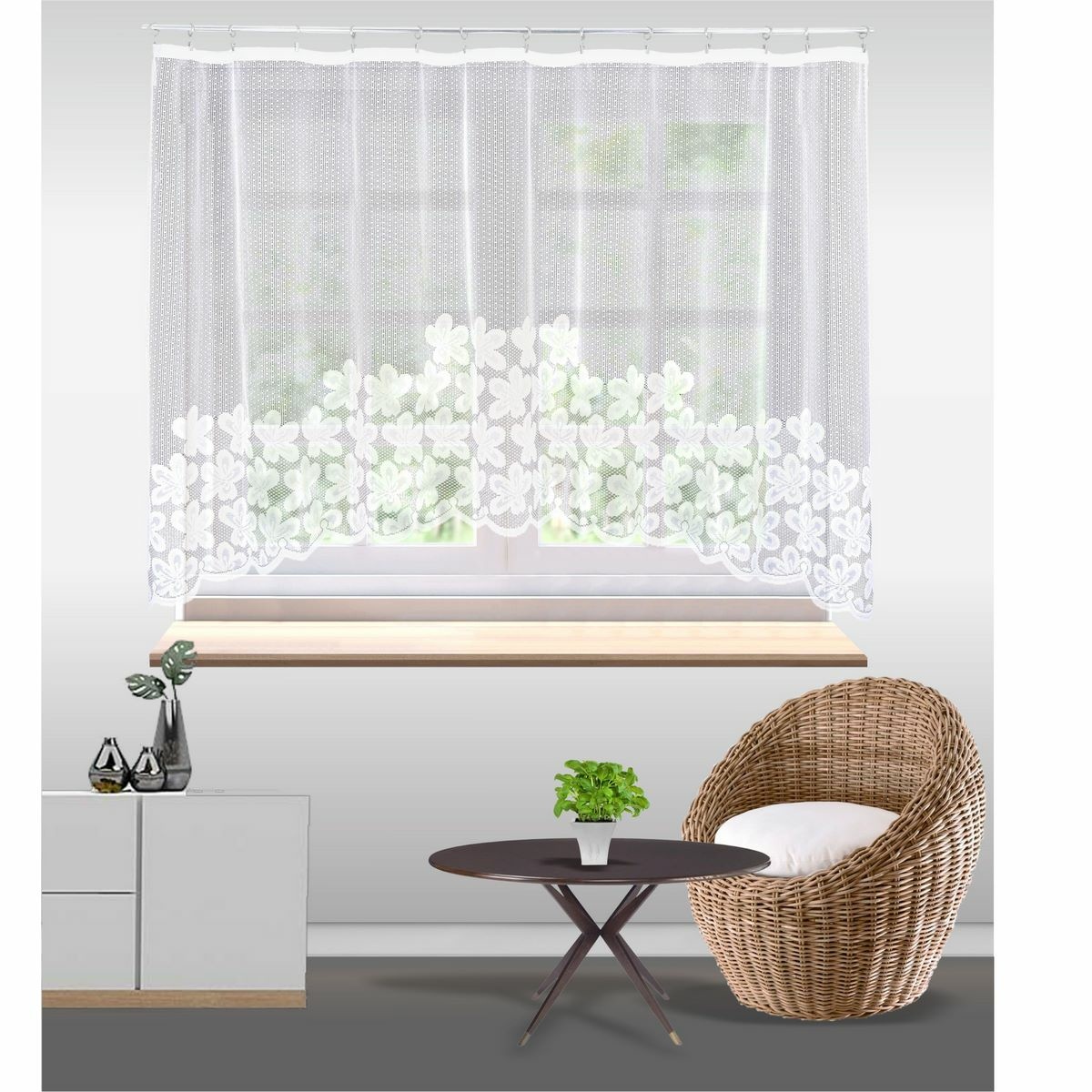 Hotová žakárová záclona s kvetinovým vzorom má všitú riasiacu lemovku, vďaka ktorej si záclonu krásne nariasíte.Záclonu môžete zavesiť na žabky alebo háčiky.