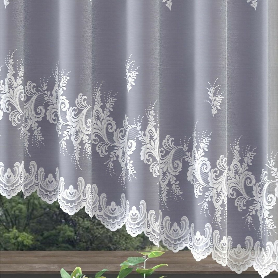 Moderná žakárová záclona v nádhernom kvetinovom vzore pôsobí veľmi vkusne a elegantne. Okraje záclony sú výrobne zakončené, nie je potrebné ju obšívať. Žakárové záclony sa vyznačujú jednoduchou údržbou. Fotografia je ilustračná. Záclona je v prevedení na okno.