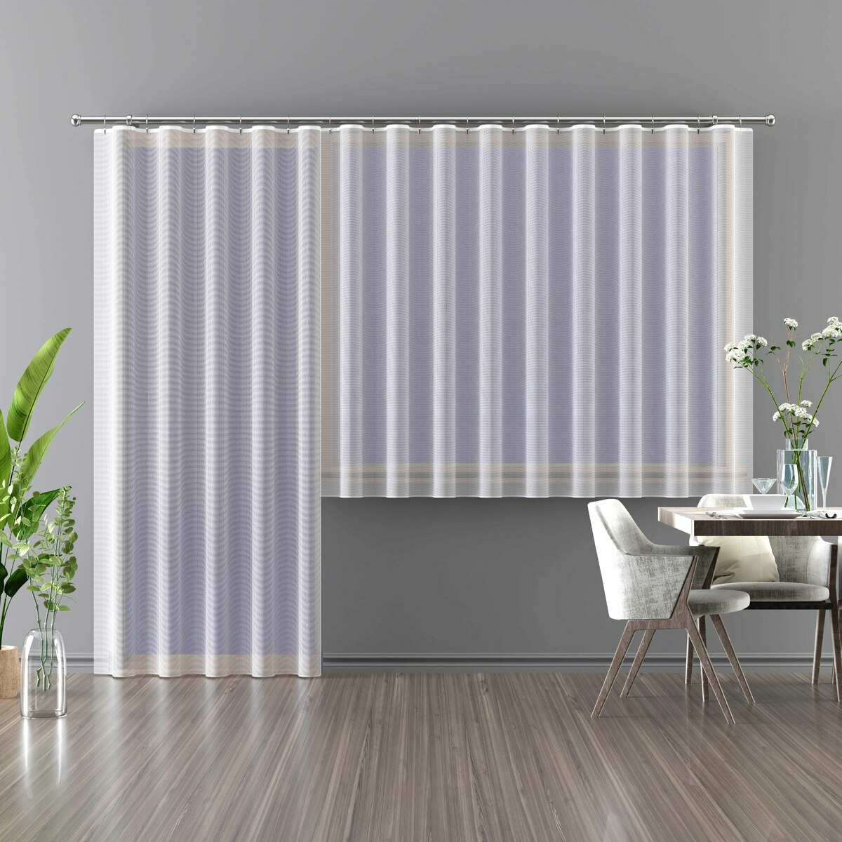 Moderná hotová záclona v nádhernom decentnom celoplošnom vzore působí veľmi vkusne a elegantne. Vďaka ťažítku tzv. olovku záclona visí rovno a nekrúti sa.Okraje záclony sú výrobne zakončené, nie je potrebné ju obšívať.Fotografia je …