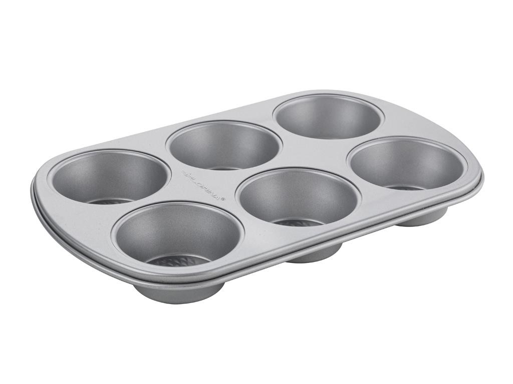 Forma na muffiny Florina naraz upečie 6 kusov obľúbených muffinov. Je vyrobená z uhlíkovej ocele, opatrená nepriľnavým povrchom.Rozmery: 35 x 25 x 18 cm. Hrúbka: 0,5 mm.Forma na muffiny FlorinaPre 6 ks pečivaNepriľnavý povrch