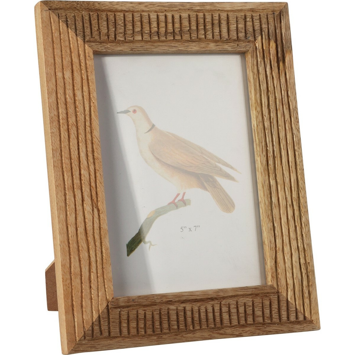 Dekoratívny rámček na fotografiu z mangového dreva s vrúbkatým rámom dokonale ozdobí váš domov svojim dizajnom. Ideálny pre boho, rustikálnym alebo škandinávske štýly interiérov. Vnútro rámčeka je vyplnené dočasným obrázkom a zaisten sklom, ktoré ochráni vašu fotografiu. Na zadnej strane rámčeka sú úchyty, ktoré vám umožnia ho kamkoľvek umiestniť. Rámček pojme fotografiu veľkosti 13 x 18 cm.Majte neustále na očiach fotografie milovaných osôb alebo spomienku na krásnu dovolenku, ku ktorej sa budete môcť vždy vracať, doplnenú o zdobný rámček.