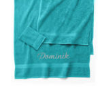 Kúpte svojim blízkym alebo sebe froté uterák s výšivkou. Týmto darčekom urobíte zaručene radosť každému. Uteráky ponúkame v troch rôznych rozmeroch a mnohých farebných variantách. Maximálny počet znakov pre vyšitie je 12. Počet vyšitých znakov úmerne ovplyvňuje výšku výšivky (viac znakov = menšie písmo). Výslednú výšku písma ovplyvňuje aj rozmer zvoleného uteráka. Pri použití kombinácie písmen s dolnými doťahmi (g, j, p, q, y) a hornými doťahmi (b, d, f, h, k, l, t) je nutné počítať s optickou zmenou výšky písma. V takom prípade sa celková výška výšivky meria od najvyššieho bodu písmen v hornej linke po najnižší bod písmen v spodnej linke. Tým je výsledné písmo nižšie, než by to bolo pri použití písmen iba s hornými doťahmi.Odporúčanie: rubová strana výšivky je podložená netkanou textíliou, ktorú odporúčame odstrániť až po prvom vypraní. Odstránite ju jednoduchým odtrhnutím alebo šetrným odstrihnutím nožnicami. Vrchná strana výšivky je opatrená jemnou ochrannou fóliou, ktorá je ľahko rozpustná vo vode.Farba vyšívacích nití na výber: šedá, antracitová, ružová, modrá, biela.Rozmery uterákov:- 50 x 100 cm- 70 x 130 cm- 90 x 150 cmVýber typu výšivky:meno podľa vášho priania – výška písma až 5 cm, maximálny počet znakov 12šablóny mix výška 4 cmšablóny mačky, psy a kone: výška 5 – 8 cm (výška sa prispôsobí veľkosti plochy textilu) – niť iba v antracitovej farbeInformácie o produkte: Froté uterák v mäkkej a príjemnej kvalite je výnimočne savý. Jeho farby sú dlhotrvajúce a odolávajú praniu. Je zdobený tkanou bordúrou.Materiál: 100% bavlna buklé froté. Gramáž: 420 g/m2. Uterák nesie certifikát Öko – Tex Standard 100, ktorý zaručuje použitie zdravotne nezávadných materiálov. Odporúčané pranie do 60 °C (ekologické pranie na 40 °C). Výber z 11 farieb a 3 rozmerov.