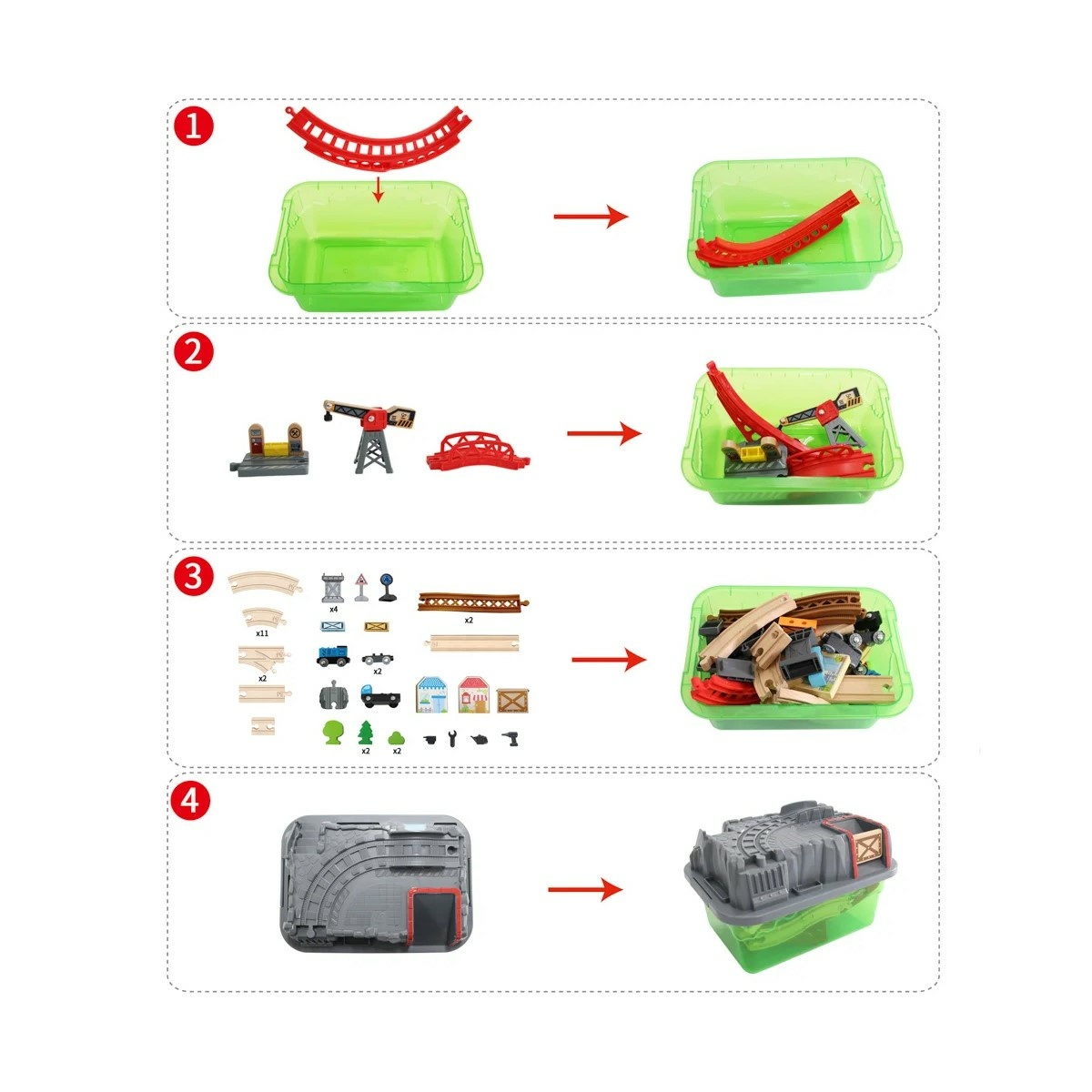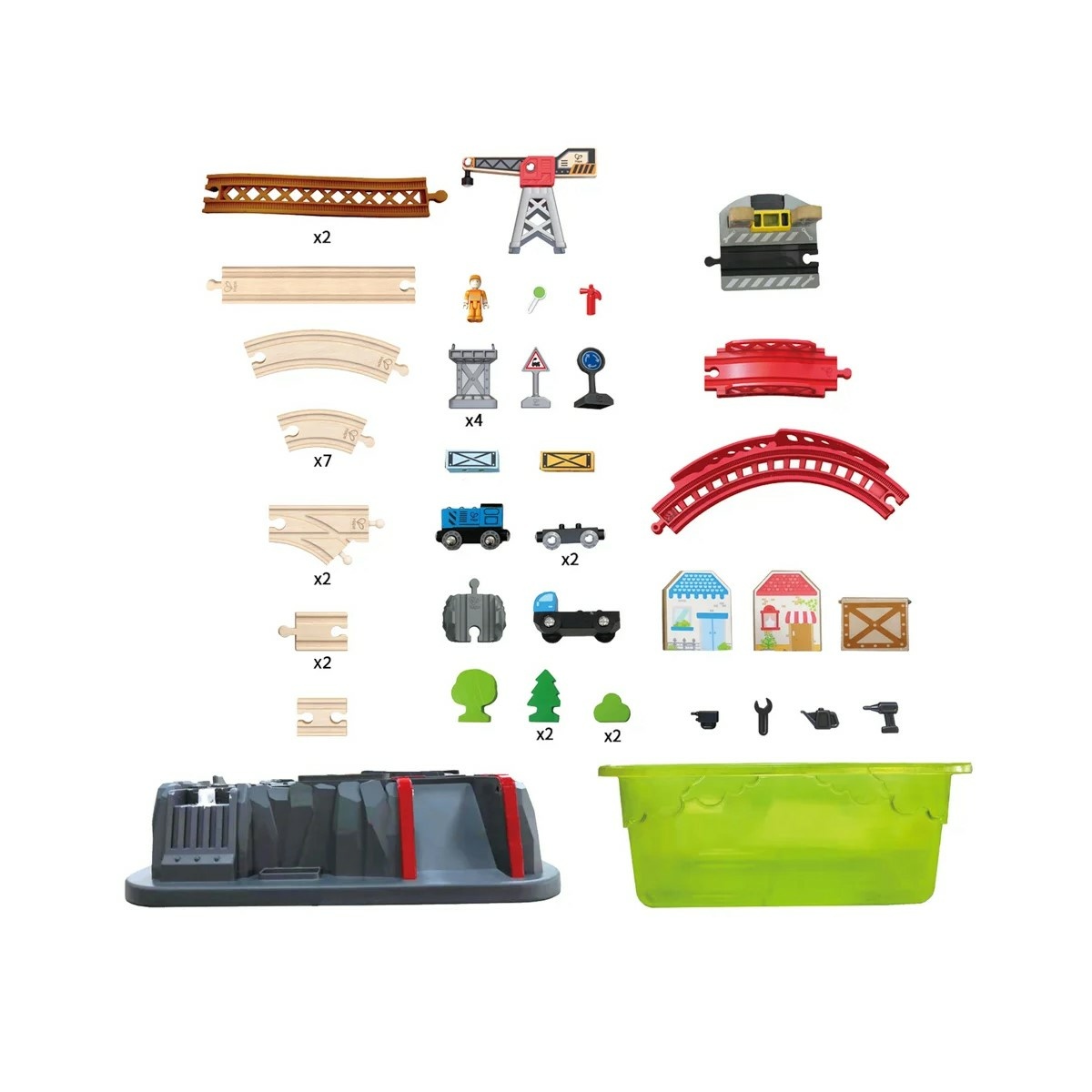 Táto skvelá sada vám umožní vytvoriť si vlastné mesto! Vybaľte všetko z úložného boxu a potom aj vrátane veka vytvorte fantastické mestečko s vláčikodráhou, kde sa môže cestovať vlakom a prevážať náklad. Rozmer cca: 50 x 80 x 14 cm
