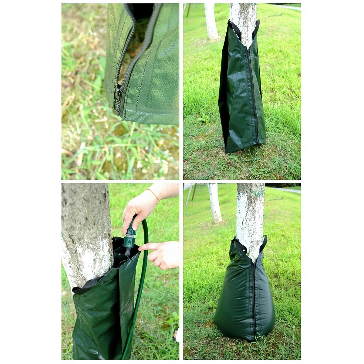 Zavlažovací vak má veľmi jednoduchú a rýchlu inštaláciu a jednoducho sa obsluhuje. Do vaku je možné pridať rozmiešané hnojivo. Vhodné pre čerstvo vysadené, ale aj už vyrastené stromy, ukotvenie pomocou zipsu. Vak vyhovuje hrúbke stromu do cca 15 cm, pre silnejšie kmene je možné prepojiť niekoľko vakov pomocou zipsu a tým zvýšiť celkový obvod aj objem zálievkovej vody. Vždy najskôr nainštalujte vak k rastline a až následne ho naplňte vodou. Vďaka vaku maximalizujete efektivitu zálievky. Doba rovnomerného uvoľňovania vody je cca 4 – 6 hodín. Pri veternom počasí odporúčame ukotvenie vaku pomocou záchytného oka.