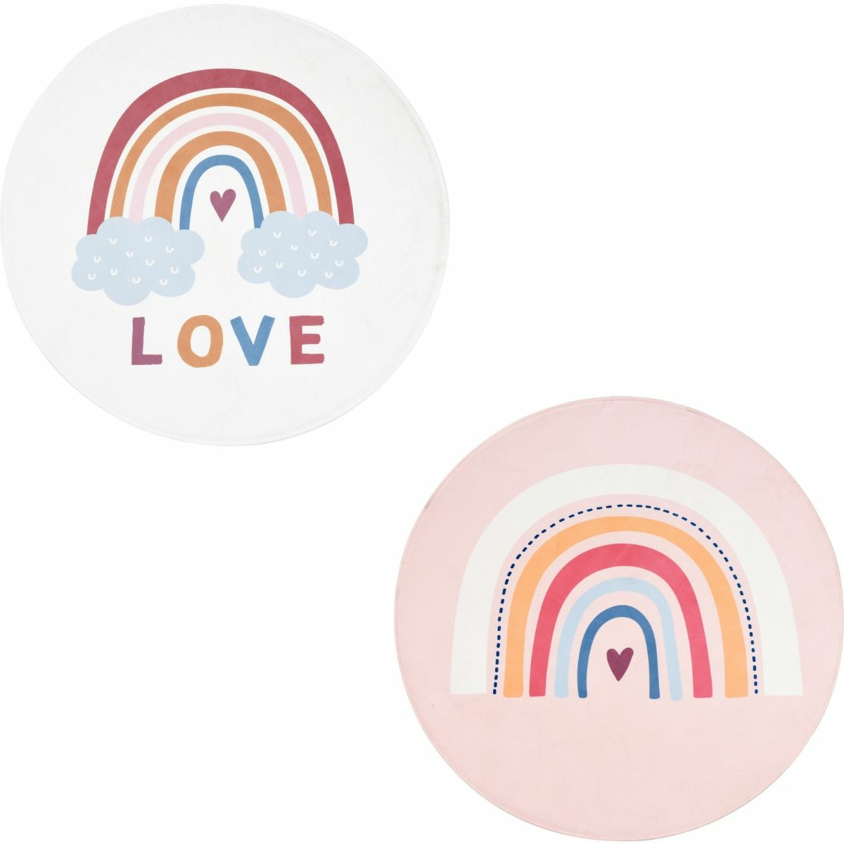 Okrúhly detský koberec s potlačou Rainbow s priemerom 100 cm je vyrobený z polyesterového materiálu s jemným chlpom. Vo vnútri sa nachádza penová výplň pre extra pohodlie. Spodná strana je vybavená protišmykovými bodmi, ktoré zaisťujú bezpečnosť a stabilitu na podlahe. Tento koberec je ideálnou voľbou pre detskú izbu, kam prinesie radosť a pohodlie.Technické parametre: