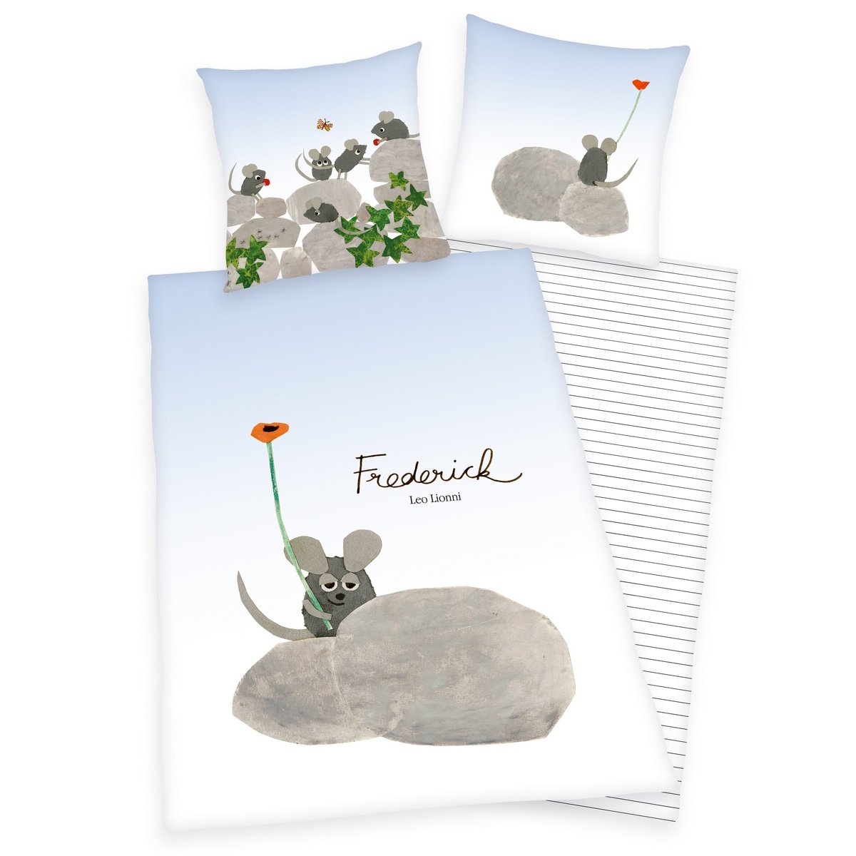Obliečky, ktoré si aj vy zamilujete na prvý pohľad. Originálny motív z knihy Frederick nadchne každého a zaručene nesmie chýbať v izbe vašich detí. Obliečky navyše vykúzlia úsmev na detskej tvári a zároveň sa stanú skvelým doplnkom do ich izbičky. Príjemná bavlna potom zaručí pohodlný a pokojný spánok. Obliečky majú certifikát Öko-Tex Standard 100.Súprava obsahuje: