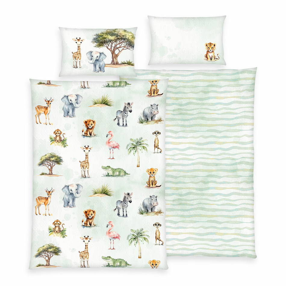 Krásny motív Safari zvieratiek nesmie chýbať v izbe vašich detí. Vďaka mäkkému príjemnému flanelu, obliečky navyše vykúzlia úsmev na detskej tvári a zároveň sa stanú skvelým doplnkom do ich izbičky. Príjemný flanel potom zaručí pohodlný a pokojný spánok. Obliečky sú obojstranné, ako vyobrazené na fotografii.Súprava obsahuje: