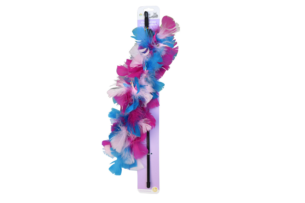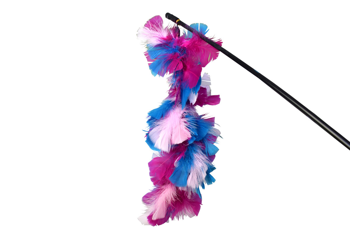 Mačičky milujú nadýchané pierka. Prebúdzajú v nich tie pravé lovecké inštinkty. Perie pripevnené na tyčke dokáže s vašou asistenciou divy. Nebudete poškrabaní od svojho mačacieho miláčika a spoločne si budete hru užívať. Rozmery: dĺžka 50 cm. Farba fialová / modrá. Vyrobené v Nemecku.