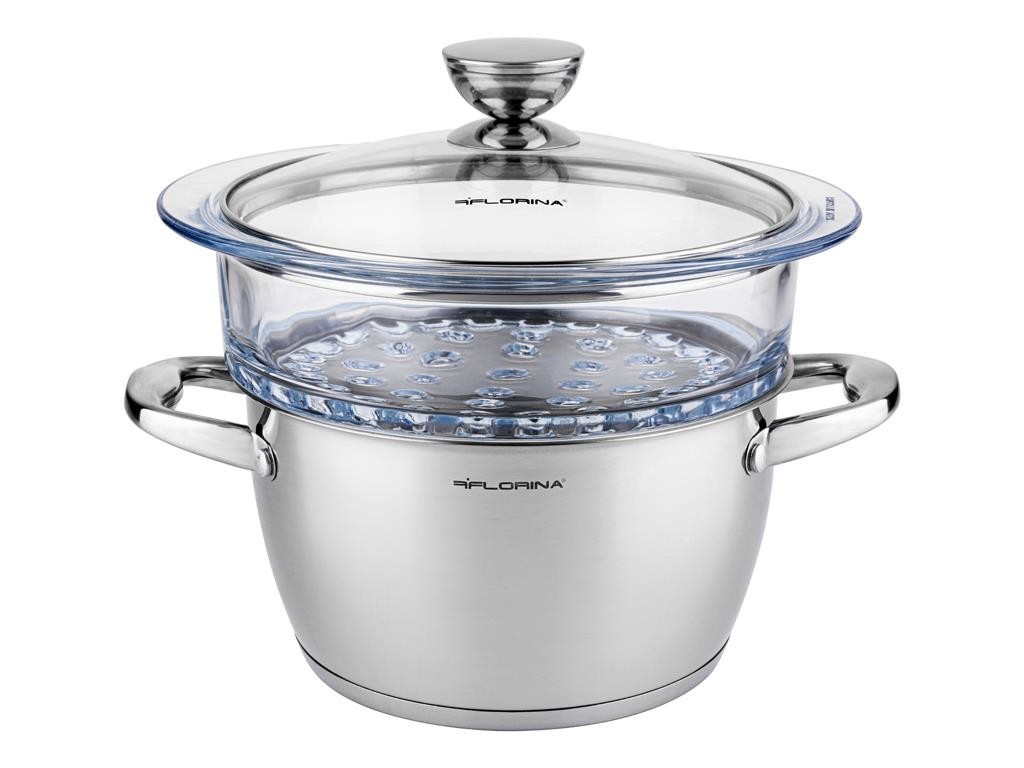 Varenie v pare patrí medzi zdravé spôsoby varenia bez pridaného tuku. Hrniec na varenie v pare je vybavený pokrievkou a vyrobený z nerezovej ocele. Jeho súčasťou je vkladacia sklenená vložka s ventilačnými otvormi. Umožňuje tak ľahký prehľad o pripravovanom jedle. Sklenené diely je možné stohovať a variť naraz niekoľko jedál súčasne. Hrniec je vybavený indukčným dnom, a preto je vhodný na všetky typy sporákov, vrátane indukčných. Nitované nerezové rukoväte sa počas varenia nezahrievajú. Materiál: nerezová oceľ, odolné sklo odolávajúce vysokým teplotám. V ponuke 2 varianty.Rozmery sklenenej vložky: výška cca 8 cm, priemer 20 cm.Rozmery hrnca: výška cca 12 cm, vnútorný priemer 20 cm, objem 2,5 l.Zostava 3 dielov vrátane pokrievky: výška celkom 22 cm.Zostava 4 dielov vrátane pokrievky: výška celkom 29 cm.  Hrniec na varenie v pareZdravé varenie bez použitia tukuJedlo si zachováva cenné vitamínySklenená vložka z odolného skla s ventilačnými otvormi na cirkuláciu paryVariant 3 diely: hrniec, 1 x sklenená vložka, sklenená pokrievkaVariant 4 diely: hrniec, 2 x sklenená vložka, pokrievkaHrniec z nerezovej ocele 2,5 l