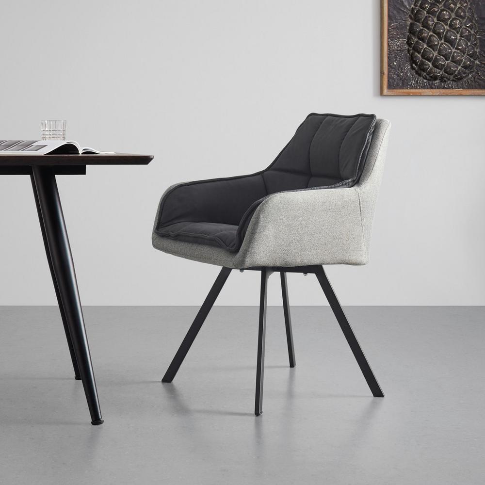 Tento artikel je k dispozícií IBA ONLINE!Táto stolička ponúka trendové sedenie v tmavej a svetlej šedej tkanine, vďaka penovému polstrovaniu zabezpečí pohodlné sedenie. Hranaté čierne nohy z kovu dodávajú stoličke atraktívny vzhľad.