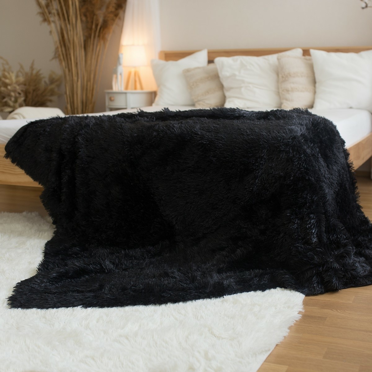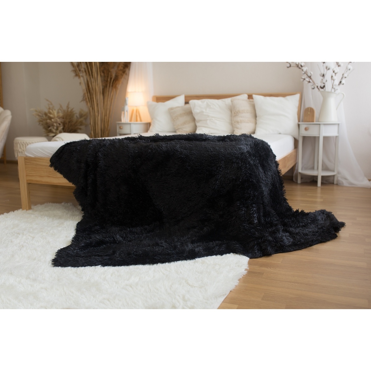 Jerry Fabrics Deka s dlhým vlasom Riccia čierna, 150 x 200 cm