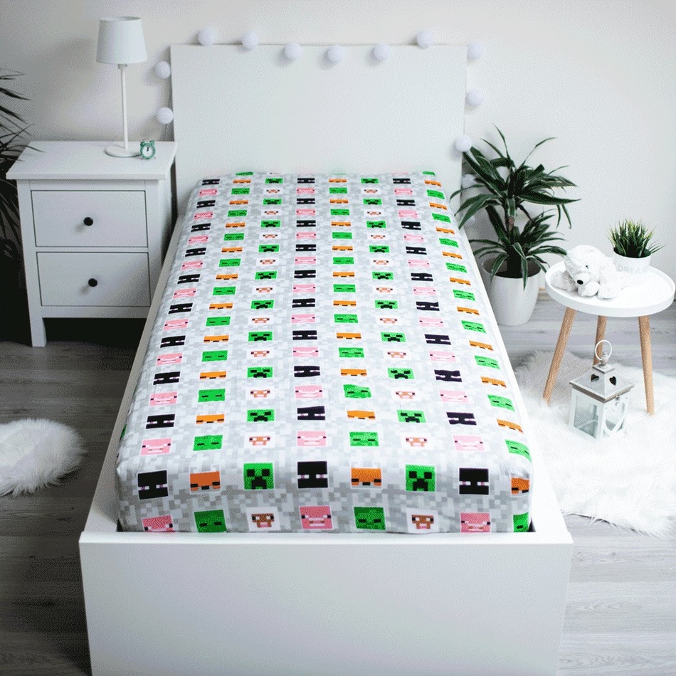 Štýlové prestieradlo pre milovníkov hry Minecraft. Urobte deťom radosť a kúpte im prestieradlo s ich obľúbenými filmovými hrdinami. Prestieradlo má praktickú gumu v rohoch, ktorá zabráni zhrňovaniu a zaistí, aby bolo prestieradlo upravené a spánok na ňom maximálne pohodlný. Prestieradlo môžete zladiť s ďalšou posteľnou bielizňou v tomto štýle. Vhodné na matrace v maximálnej výške 25 cm.