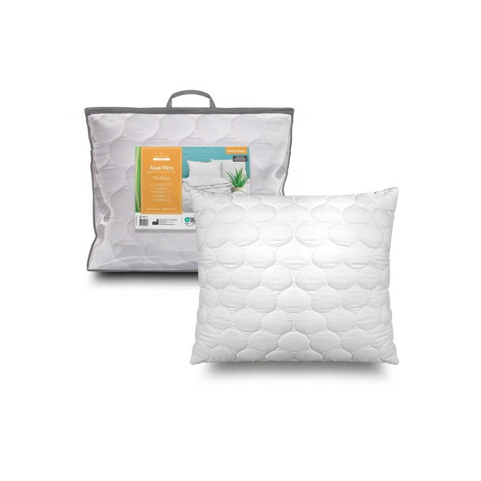 Aloe Vera vankúš eliminuje škodlivé mikróby z vášho najintímnejšieho okolia. V tom pomáha účinná látka Aloe Vera, ktoré je počas výroby pridávané do vlákien. Vankúš je antialergický, eliminuje vírusy, baktérie a plesne a zaisťuje tak bezpečnosť vás a vašej rodiny. Vankúš je veľmi príjemný na dotyk a zároveň mäkký, aby poskytol dokonalý komfort spánku.