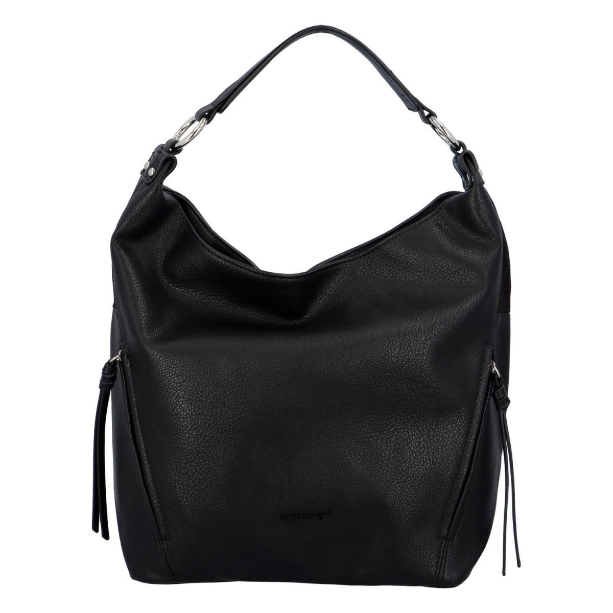 Kabelka David Jones, s kterou budete vypadat za všech okolností elegantně. Využijete ji ke každodennímu nošení do zaměstnání a odpoledne se vám rozhodně bude hodit do města. Kabelku můžete nosit v ruce nebo na rameni. Ramenní popruh je odepínatelný a délkově nastavitelný. Hlavní kapsa je uzavíratelná na zip a vnitřní prostor je vybavený kapsičkou na zip pro drobnosti. Z vnější části jsou celkem tři zipové, menší kapsičky. Dvě vertikální jsou vpředu po stranách. Zip je zakončený koženkovými provázky, které dodávají kabelce zajímavý a nepřehlédnutelný detail. Třetí kapsička je všitá na zadní straně kabelky.Materiál: koženka. Rozměry: 29 x 32 x 14 cm.KabelkaPřes rameno i do rukyOdnímatelný ramenní popruhHlavní kapsa na zipUvnitř zipová kapsa na drobnosti3 vnější kapsičky na zip
