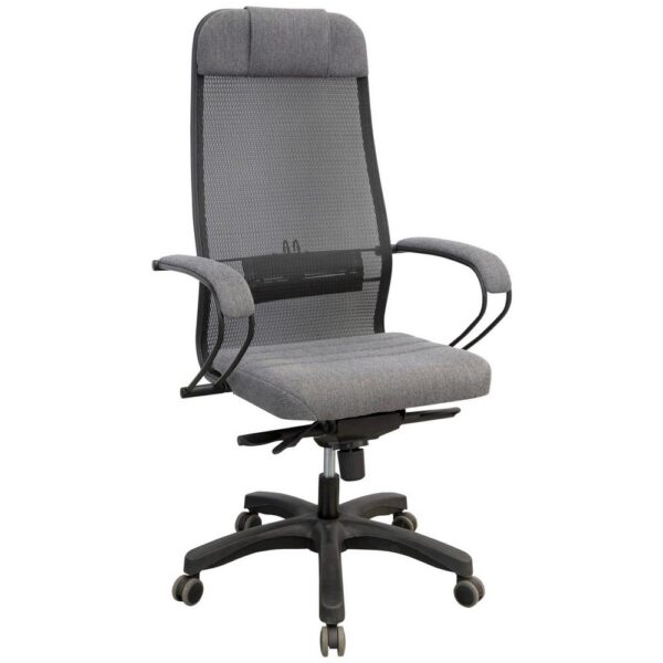Kancelárska stolička GARY 1 s opierkou hlavy, ergonomickou chrbtovou opierkou a bedrovou opierkou zaujme v trendovej čiernej s poťahom zo sieťoviny >. Táto výškovo nastaviteľná otočná stolička je vybavená piatimi kolieskami vrátane funkcie zastavenia a je cenovo dostupným a praktickým riešením pre každú kanceláriu. Kancelárske kreslo meria pribl. 62 x 115 x 65 cm (Š x V x H) a môže dosiahnuť maximálnu výšku cca 125 cmupraviť. Minimálna výška sedadla je cca 45 cm. MaximálneVýška sedu je cca 54 cm. Celkovo stolička unesie až 120 kg. Sedadlo má rozmery cca 51 x 51 cm (Š x H). Najdôležitejšie informácie na prvý pohľad: Rozmery a Odolnosť Minimálna výška sedadla v cm: 45 Maximálna výška sedadla v cm: 54 Celková výška min. v cm: 115 Celková výška v cm: 125 Približná plocha sedadla (Š x H) v cm: 51 x 51 max. Nosnosť cca v kg: 120 Materiál & Roly Farba obalu: čierna Polstrovanie sedadla: Polyuretán Povrch: textil/sieťovina Materiál rámu: plast Roly: áno Typ rolí: n.a. Funkcia zastavenia: áno Funkcie & Vybavenie Nastaviteľná výška: áno Sedadlo sa dá otáčať: áno Opierky rúk: áno Opierka hlavy: áno Nastaviteľná zadná časť: nie Berrová opierka: áno Špeciálne funkcie: –