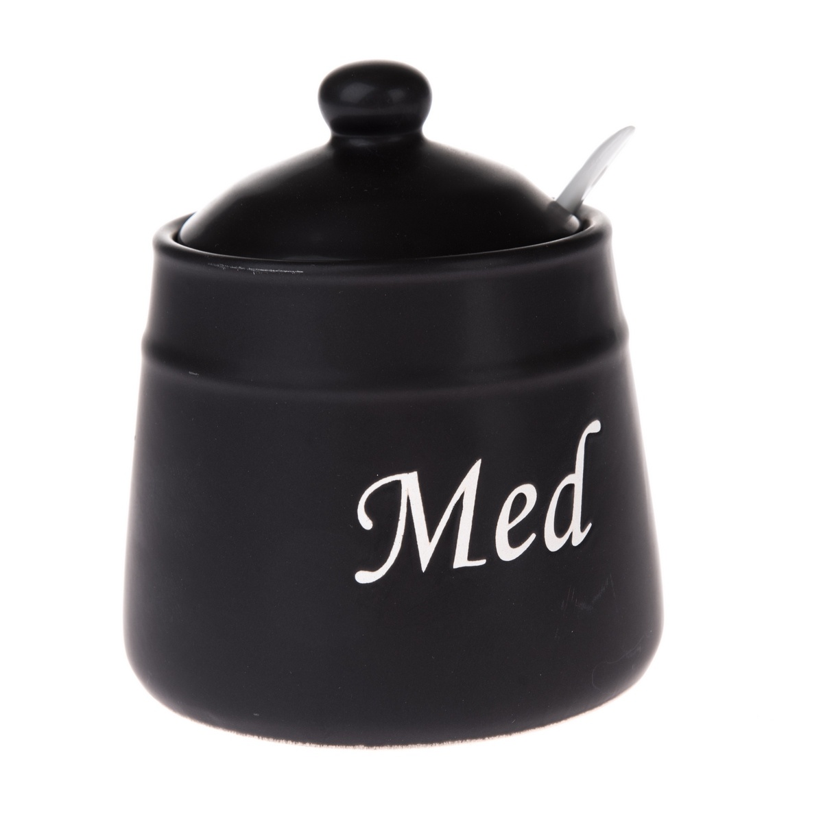 Krásna dizajnová dóza na med bude zdobiť vašu kuchyňu a zároveň bude praktickým pomocníkom. Vďaka svojej šikovnej veľkosti nebude na linke prekážať, ale zároveň ponúka dostačujúci objem na skladovanie medu. Pomocou praktickej drevenej medovky jednoducho naberiete med a môžete ho dávkovať do čaju alebo na pečivo.