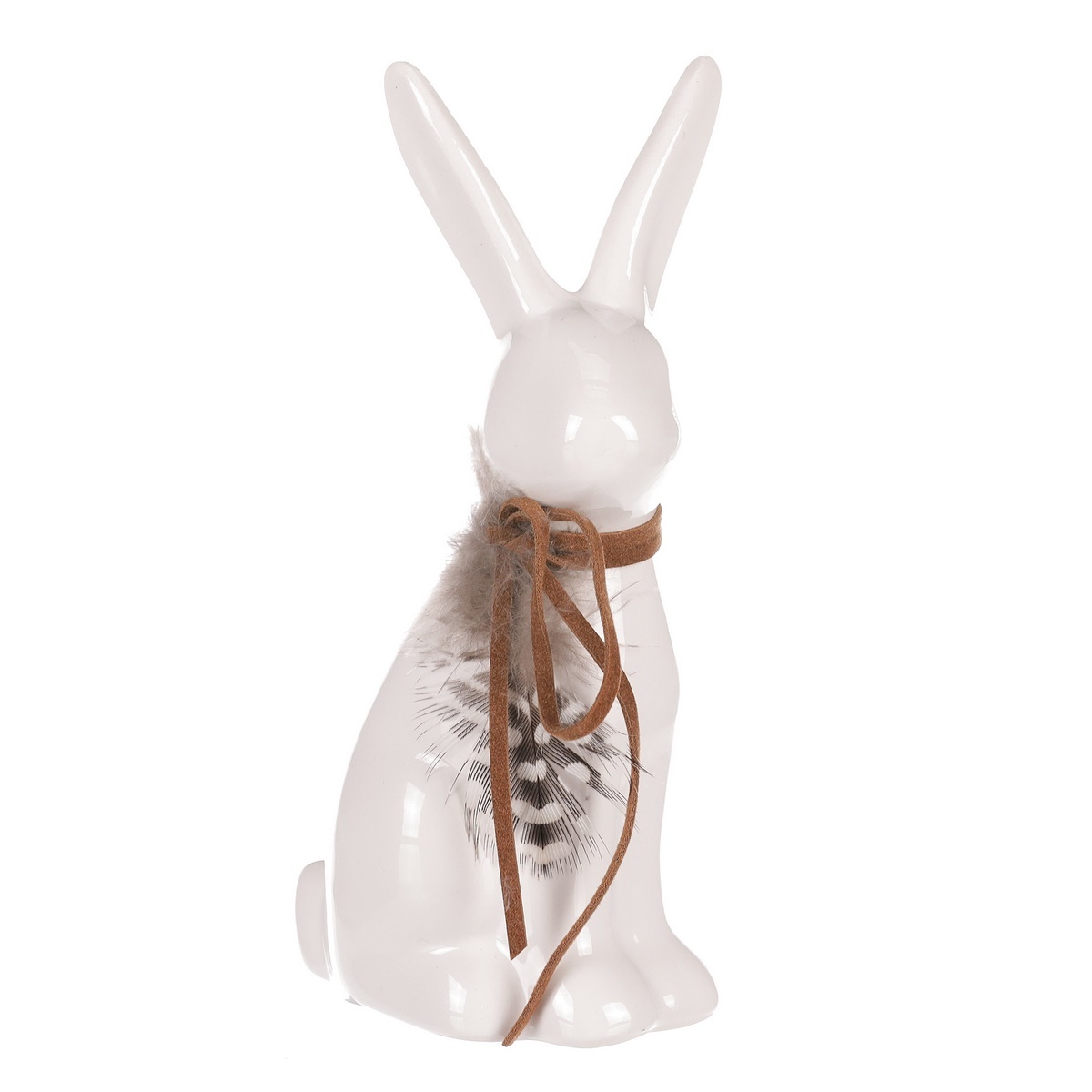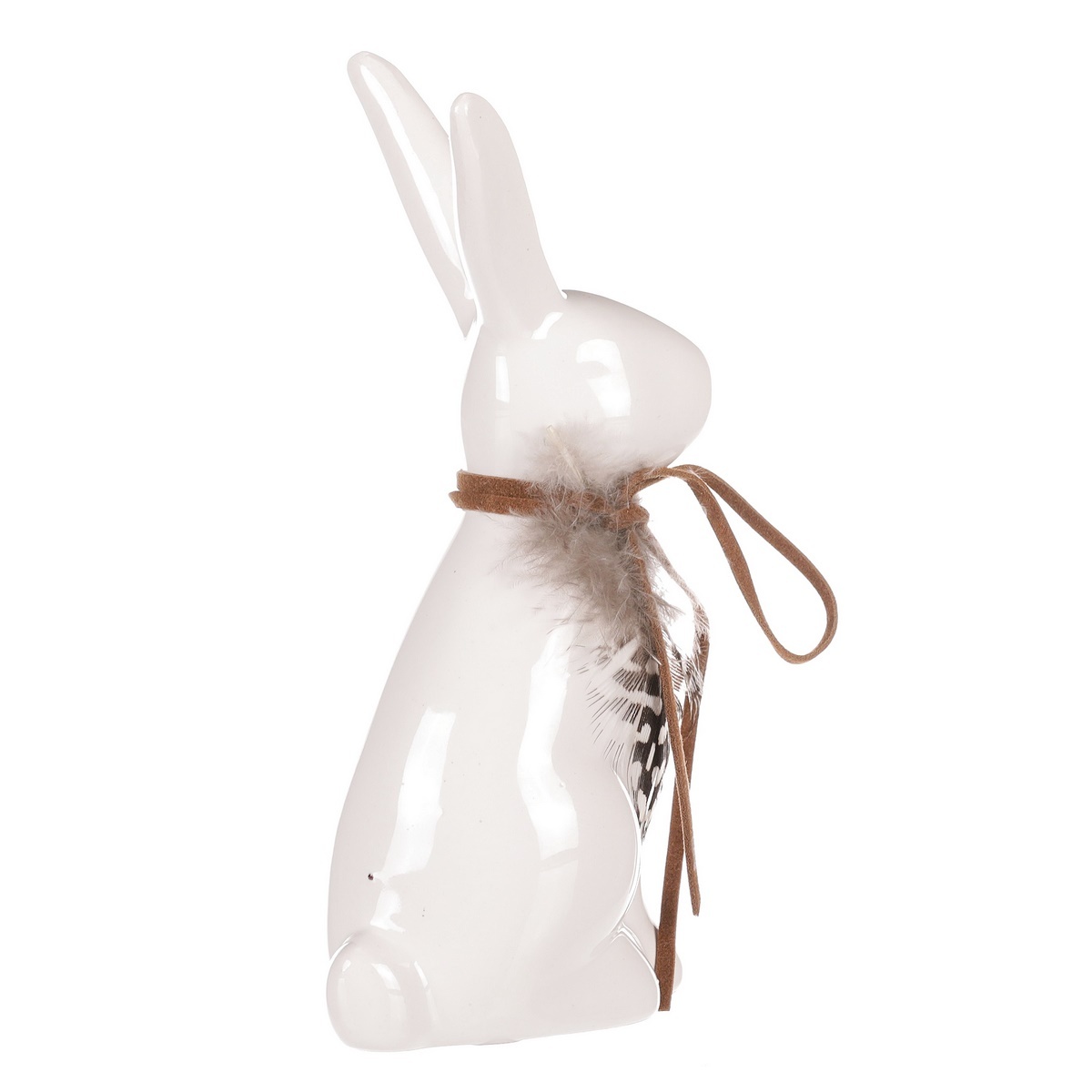 Keramický zajac s pierkom, 7 x 5 x 13 cm