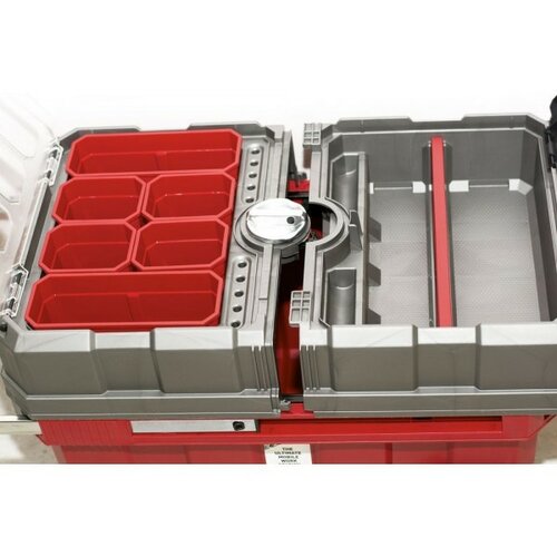 Keter otváracia skrinka Masterloader ponúka rozsiahlu skrýšu, ktorej obsah je dokonale viditeľný vďaka priehľadnému veku. Priestranná a prehľadná na jednoduché uloženie rôznych veľkostí náradia i príslušenstva a ich používanie. Organizéry na náradie vo vnútri je možné ľahko vybrať, čo výrazne uľahčuje prácu s v nich uloženými drobnými predmetmi, ako sú skrutky, matky, klince.Praktické kovové držadlo s mäkčenou časťou a gumové kolieska pre ľahkú manipuláciu a prenášanie. Systém centrálneho zamykania pre ochranu obsahu. Skrinka bola vyrobená z odolného plastu, ktorý zaručuje jej stálosť a odolnosť voči mechanickému poškodeniu.