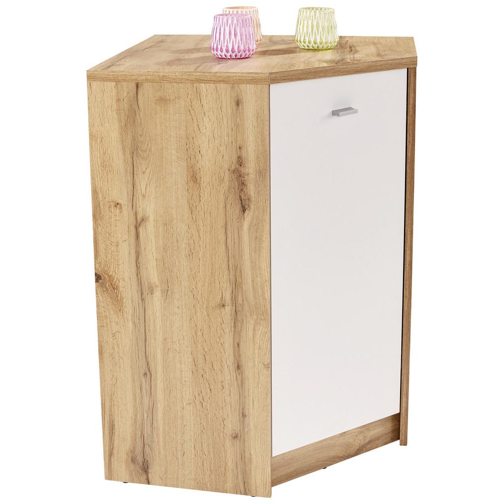 Rohová komoda zo série 4-YOU NEW v dekore dub Wotan s čelom v bielej farbe je atraktívnym riešením ako ušetriť priestor a navyše harmonicky zapadá do takmer každého štýlu bývania. Veľkou výhodou je možnosť vyplniť rohový priestor, ktorý ostáva často nevyužitý.Komoda s rozmermi 60,9 x 85,4 x 60,9 cm (š/v/h) je vybavená 2 veľkými priečinkami za 1 dverami. Vďaka tejto komode si urobíte doma poriadok bez akejkoľvek námahy. Möbelix-Onlineshop vám ponúka na výber aj ďalšie veľkosti a prevedenia komôd a regálov z tejto série. Kombinujte!