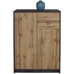 S touto elegantnou komodou zo série 4-YOU získavate do svojej domácnosti vizuálne príťažlivý, a zároveň praktický nábytok. Komoda vkusne kombinuje tmavý betónový dekor s dekorom dubu Wotan na čelnej stene. Nábytok o rozmeroch cca 74 x 111,4 x 34,6 cm (Š x V x H) obsahuje 2 otočné dvierka, za ktorými sa nachádza celkom 5 políc. Ďalší úložný priestor poskytujú 2 praktické zásuvky v hornej časti komody. Dvierka aj zásuvky sa otvárajú pomocou hliníkových úchytiek. Komoda je dokonalým riešením pre viac úložného priestoru v každej izbe aj vďaka ľahkej kombinovateľnosti s ďalším nábytkom z radu 4-YOU.