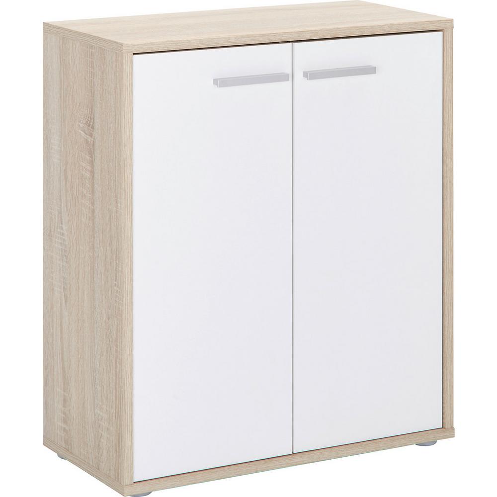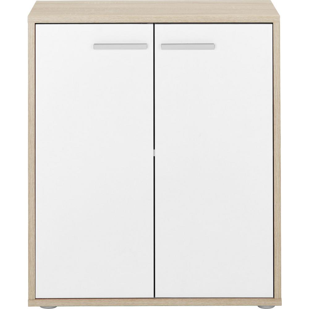 Jednoduchá a praktická komoda v atraktívnom a sviežom prevedení. Komoda s rozmermi 60 x 70 x 30 cm (š/v/h) v dekore dub Sonoma v kombinácii s bielou vám ponúka množstvo úložného priestoru. Vďaka svojmu neutrálnemu dizajnu sa hodí k mnohým štýlom bývania. Úchytky striebornej farby harmonicky dotvárajú celkový vzhľad komody. Komoda pozostáva z 2 dverí a 1 vkladacej police. Objavte v našom internetovom obchode ďalšie komody dub sonoma, biele komody do spálne, obývačky, detskej izby či predsiene!
