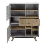 Tento výrobok je k dispozícii iba ONLINE. Táto komoda v dubovom a sivom odtieni s priamym vzhľadom ponúka praktický úložný priestor pre váš príbytok. Komoda je vyhotovená s dvomi otočnými dvierkami v dekore betón a jednou zásuvkou z MDF …