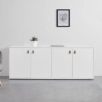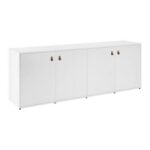 Tento výrobok je k dispozícii IBA ONLINE. Široká komoda MICK ponúka priamy vzhľad a praktický úložný priestor pre rôzne typy obytných priestorov. Biely príborník z MDF s hnedými úchytkami má za 4 otočnými dverami 4 pevné (nenastaviteľné) …