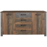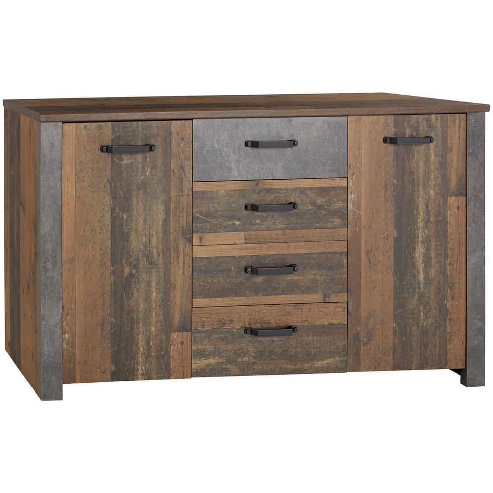 Komoda ONTARIO v dekoroch duba a betónu sa stane stredobodom záujmu v každej miestnosti. Či už v obývacej izbe, spálni, pracovni alebo predsieni, neponúka len trendy dizajn, ale tiež veľký úložný priestor. Komoda, s rozmermi približne 162 x 86 x 41,5 cm (Š x V x H), s dekormi Old Style a tmavý betón obsahuje 2 postranné otočné dvierka. Za nimi nájdete 4 nastaviteľné police na uloženie riadu, bielizne, písacích potrieb či iných predmetov. Ďalší úložný priestor ponúkajú 4 zásuvky. Dvierka aj zásuvky využívajú mechanizmu tlmeného dovierania (systém Soft-Close). Štýlovú komodu môžete nakombinovať s ďalším nábytkom zo série ONTARIO a navodiť si tak doma príjemnú atmosféru starých čias.