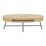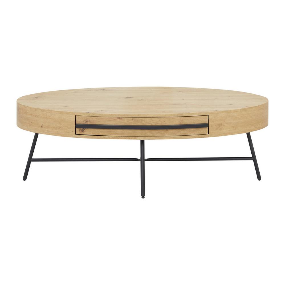 Tento tovar je k dispozícií IBA ONLINE. Tento oválny konferenčný stolík v dubovej farbe zaujme svojím trendovým vzhľadom s nádychom retro dojmu. Konferenčný stolík o rozmeroch 120 x 40 x 60 cm (š xvxh) vyrobený z MDF s nožičkami z čiernej okrúhlej trubice má 1 zásuvku s úchytom v čiernej farbe. Je možné ho zaťažiť až do maximálnej hmotnosti 30 kg a je skvelým pútačom pozornosti v obývacej izbe. V našom internetovom obchode sú k dispozícii ďalšie konferenčné stolíky dub a oválne konferenčné stolíky.