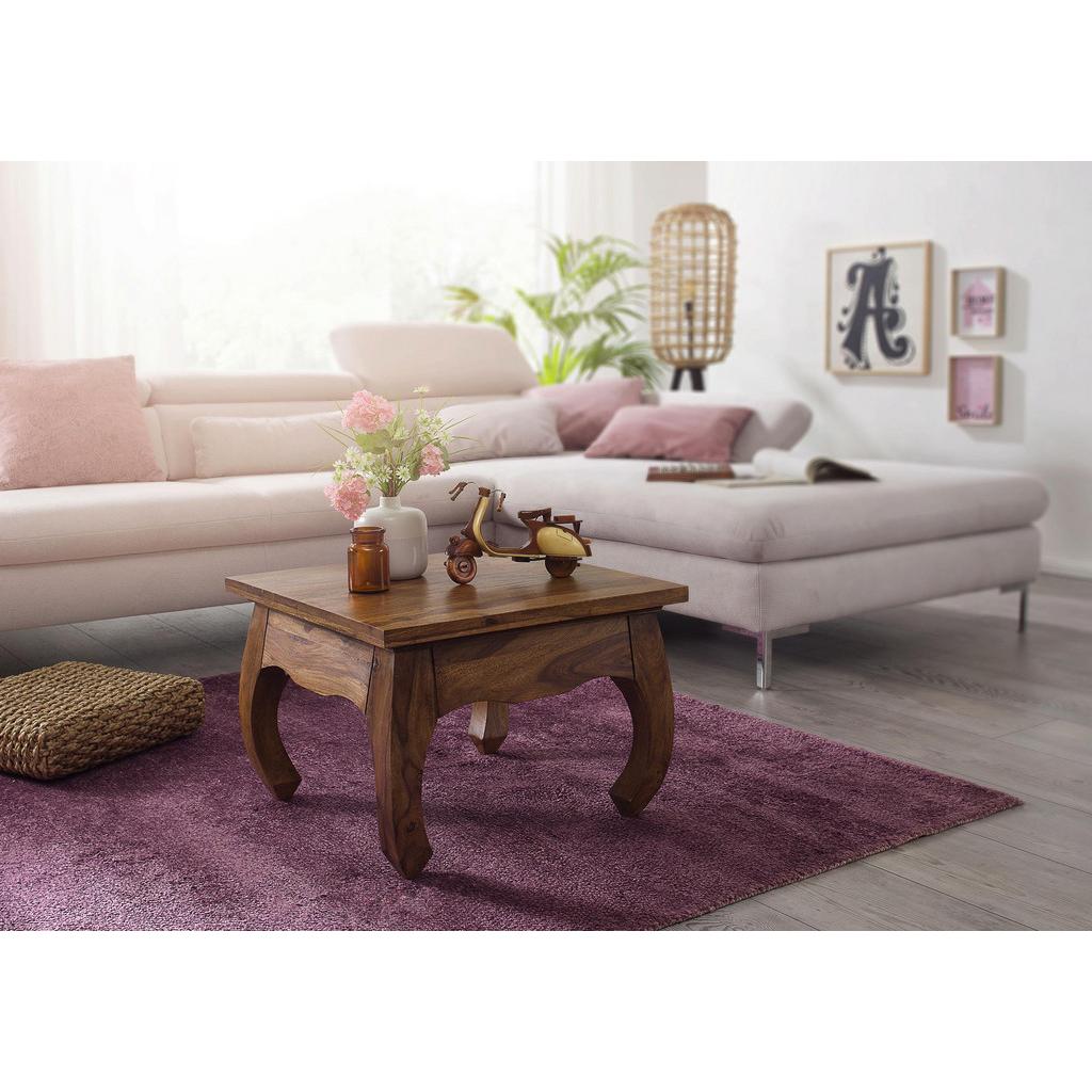 Tento výrobok je k dispozícii IBA ONLINE. Obdĺžnikový konferenčný stolík OPIUM, vyrobený z indického palisandrového dreva, predstavuje elegantný pútač pre váš domov. Nábytok s rozmermi približne 60 x 40 x 60 cm (Š x V x H) zaujme svojím prírodným dizajnom s letokruhmi. Každý jeden stolík je preto jedinečný! Stabilná doska stolíka disponuje nemalým priestorom na dekorácie, poháre, občerstvenie či tlačoviny. Štyri zakrivené nohy do tvaru polmesiaca lichotí dizajnu a dodávajú nábytku, ktorý možno zaťažiť až do 50 kg, potrebnú stabilitu. Stolík vyžaruje teplo a útulnosť, vďaka čomu ponorí váš domov do príjemnej atmosféry. Pokyny k údržbe: V prípade znečistenia stolíka ho očistite vlhkou bavlnenou handričkou a potom ho utrite do sucha. Tento stolík bol vyrobený z dreva z ekologického lesníctva, ohodnotený certifikátom FSC MIX. Upozornenie o doručení: Tovar bude doručený priamo od výrobcu špeditérskou firmou. Špeditér tovar vyloží na okraji cesty zadanej adresy, z tohto dôvodu je potrebné zabezpečiť svojpomocné odnesenie tovaru, a taktiež vlastný výnos do domu. Doručenie je uskutočnené prostredníctvom špedičnej firmy. O termíne doručenia Vás bude kontaktovať kuriér, s ktorým upres