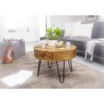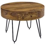 Tento výrobok je k dispozícii IBA ONLINE. Dodanie je zadarmo. Tento ušľachtilý konferenčný stolík, vyrobený zo sheeshamového dreva, upúta pozornosť na prvý pohľad. Pod stolovou doskou, s hrúbkou cca 15 mm, sa nachádzajú dve praktické zásuvky s pohodlným vysúvaním. Otvárajú sa pomocou čiernych gombíkových rukovätí. Štyri kovové nohy čiernej farby v tvare vlásenky ponúkajú pekný kontrast k masívnemu drevu v prírodných farbách, ktoré bolo ošetrené bezfarebným lakom na vodnej báze. To zaisťuje dlhovekosť tohto nábytku. Stôl má rozmery cca 60 x 44,5 cm (P x V) a nosnosť 40 kg. Či už ho použijete ako dodatočný úložný priestor alebo sa bude vynímať v strede obývačky pri gauči – tento konferenčný stolík vynikne všade. Tento tovar je k dispozícii IBA ONLINE, a zároveň je to tovar s doručením formou DROPSHIPPING. Čo to pre Vá