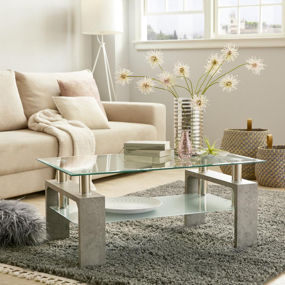Konferenčný stolík SILVIA je štýlový a zároveň praktický kus nábytku do vašej obývačky. Veľký stôl s rozmermi približne 100 x 45 x 60 cm (Š x V x H) má osem milimetrov hrubú stolovú dosku z číreho skla. Biela sklenená doska police pod ňou robí nábytok veľmi zvláštnym pútačom. Pozrite si v našom e-shope aj ďalšie stolíky z kategórií