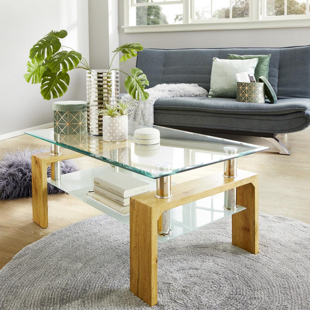 Konferenčný stolík SILVIA je štýlový a zároveň praktický kus nábytku do vašej obývačky. Stôl s rozmermi približne 100 x 45 x 60 cm (Š x V x H) má osem milimetrov hrubú stolovú dosku z číreho skla. Biela sklenená doska police pod ňou robí …