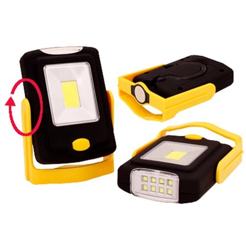 Toto LED svietidlo sa hodí nielen do dielne, ale aj do domácnosti alebo na kempovanie. Má stojan otočný o 360°, silný magnet a háčik na zavesenie, vďaka čomu sa dá upevniť takmer všade. Svietidlo môže poskytovať svetlo pomocou hlavného reflektora 3 W COB alebo postranných LED diód. Medzi oboma zdrojmi je možné jednoducho prepínať jedným tlačidlom. Napája sa pomocou 3 AAA batérií, ktoré nie sú súčasťou balenia.