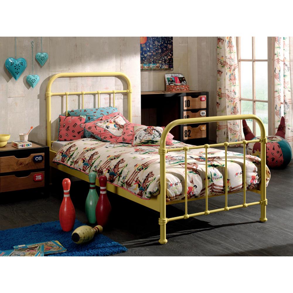 Tento tovar je k dispozícii IBA ONLINE. Kovová detská posteľ NEW YORK v žltom prevedení upúta pozornosť v každej detskej alebo tínedžerskej izbe, ktorá vyznáva retro alebo industriálny štýl. Ležiaca plocha s rozmermi približne 90 x 200 cm (Š x D) ponúka vašim potomkom dostatok priestoru na to, aby si urobili pohodlie. Rám postele je jednoduchý a nadčasový, ale navrhnutý s jemnosťou v detailoch: Zvislé vzpery dodávajú charakter zaoblenému čelu postele, ako aj rovnako vyzerajúcim nohám. Vďaka asi 20 cm vysokým nožičkám možno hračky, boxy a pod. uložiť aj pod posteľ. Lamelový rošt je súčasťou dodávky, cena nezahŕňa matrac (hĺbka vloženia: cca 11 cm), posteľnú bielizeň a vyobrazené dekorácie. Detská posteľ z kovu, ktorá poskytuje pevný základ pre príjemné sny! Tento tovar je k dispozícii IBA ONLINE, a zároveň je to tovar s doručením formou DROPSHIPPING. Čo to pre Vás znamená? (DROPSHIPPING) – rýchlejšie doručenie – tovar ide priamo od dodávateľa k Vám a nie z našich skladov alebo predajn&iac