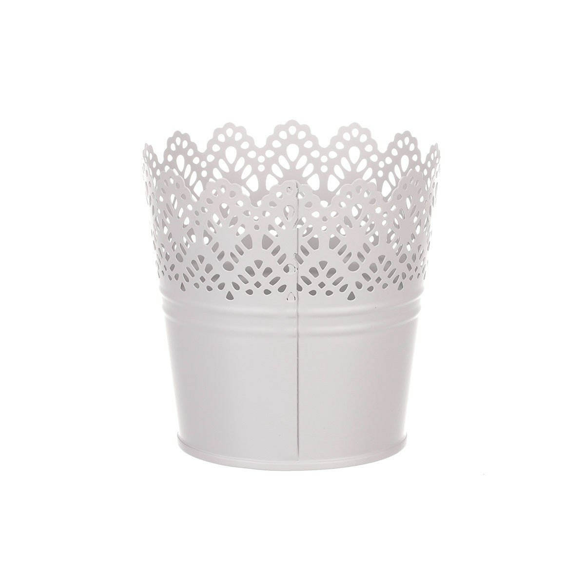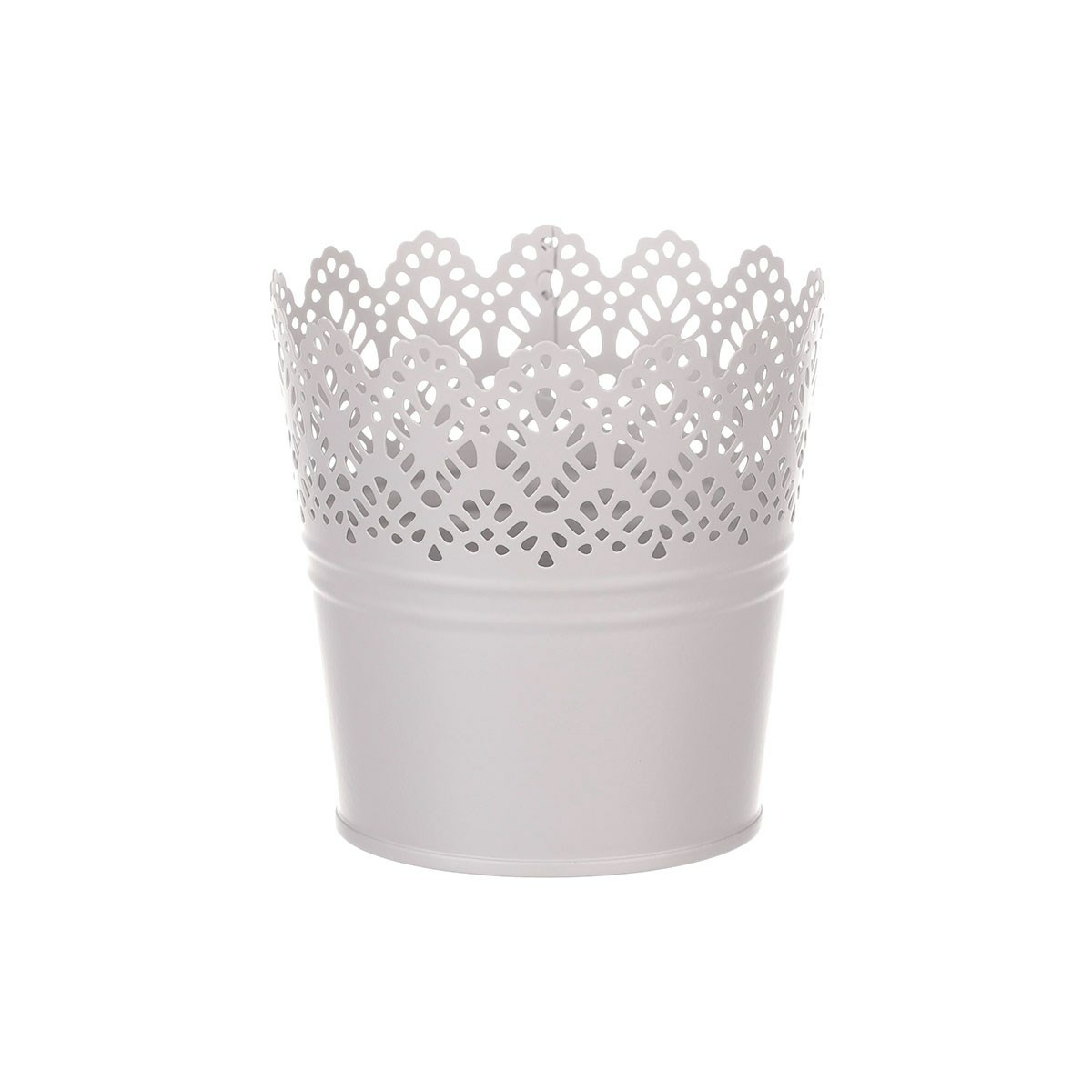 Kovový obal na kvetináč s čipkou sivá, 11 x 11 x 8 cm
