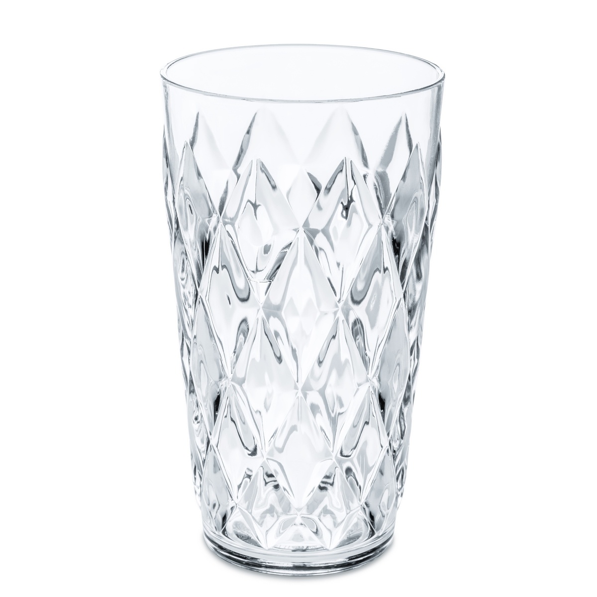Pohár CRYSTAL konkuruje slnku a je vhodný najmä pre studené nápoje. Vysoko lesklá diamantová štruktúra pôsobí príjemným dojmom a taktiež dobre izoluje, takže obsah zostane po dlhú dobu studený. Veľké poháre sa ľahko držia, stohujú a ľahko sa čistia v umývačke riadu. Ideálne na pikniky a záhradné párty.
