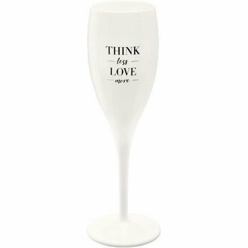 Milujeme chladivé dúšky prosecca v horúcich letných dňoch! Skvele chutí pri slávnostných príležitostiach aj v lete na vonkajšom grilovaní. Ak ste si obľúbili pocit tisíce drobných bubliniek, ktoré vám veselo tancujú na jazyku pri každom usrknutí, tento pohár s nápisom Think Less Love More je presne pre vás!Vychutnajte si osviežujúcu chuť Tintoretta alebo Bellini z krásnych pohárov vždy, keď je príležitosť! Je to štýlový kúsok, ktorý prakticky sám začne akúkoľvek konverzáciu za vás. Pohár je vyrobený z pevného termoplastu odolného voči poškriabaniu.