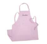 Kuchynská zástera je pekná ochrana odevu pri varení. Vyšité meno alebo iný text urobí zo zástery krásny a originálny darček. Zladiť ju môžete s utierkou v rovnakej farbe a vyšitým textom podľa vašich predstáv.