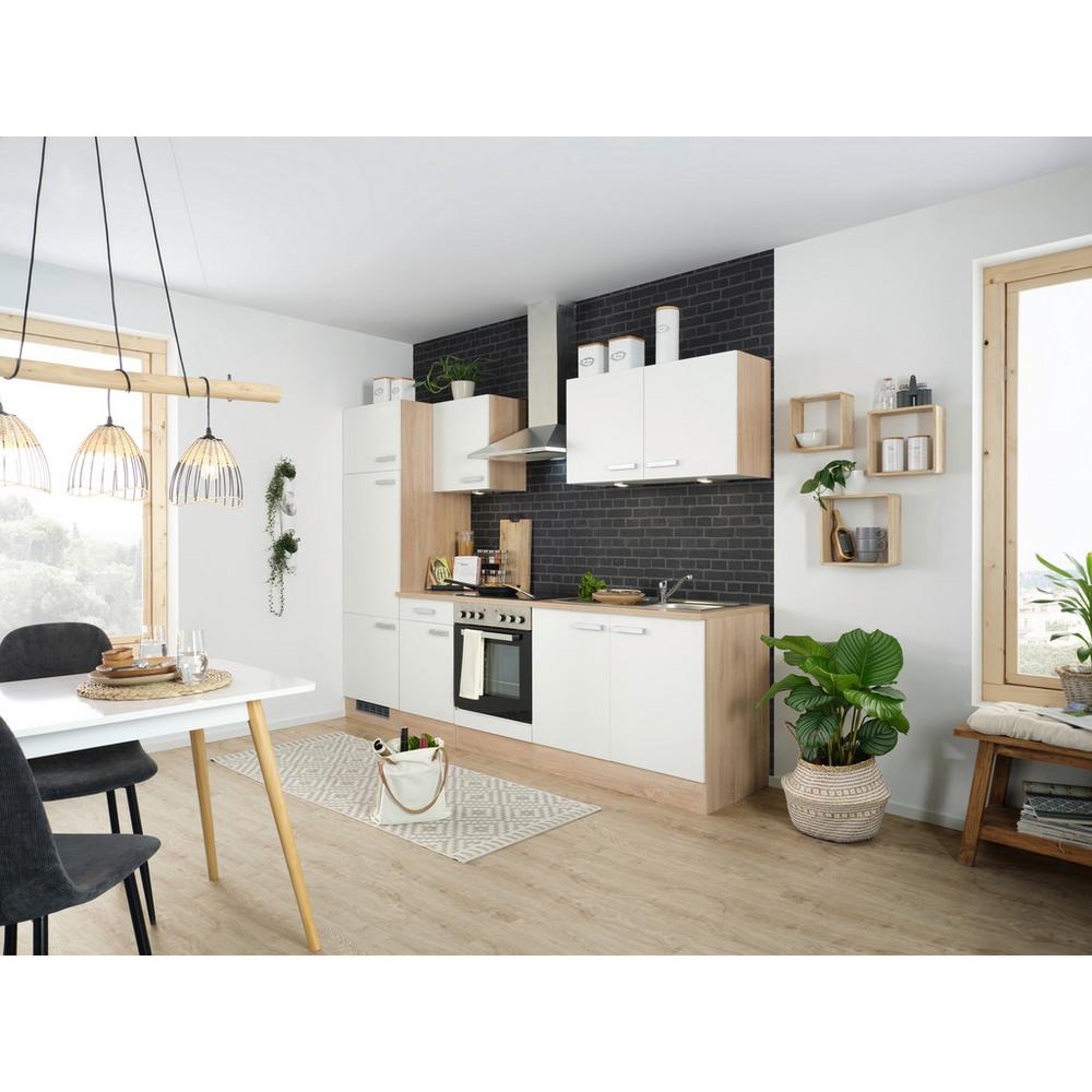 Tento tovar je dostupný IBA ONLINE. Priateľská a svetlá – najmä v kuchyni je farba citlivou záležitosťou, ktorú treba dôkladne premyslieť. S kuchynským blokom LEXA máme ideálnu farebnú kombináciu pre vašu vysnívanú kuchyňu. Moderná kombinácia dubu sonoma a matnej bielej vás pozýva na vychutnávanie a objavovanie. Kuchynský blok s dĺžkou cca 270 cm boduje nielen skvelým vzhľadom, ale predovšetkým úložným priestorom a funkciou. Hrnce, riad a poháre sa dajú rýchlo a prehľadne uložiť do nástenných a spodných skriniek a čakajú na použitie vo vašej novej kuchyni. Súčasťou je aj vstavaný sporák, digestor, sklokeramická varná doska a vstavaná chladnička s mraziacim priestorom. Kuchynský blok LEXA ponúka všetko, čo potrebujete v dobre vybavenej kuchyni. Dodáva sa bez umývadla, armatúr, osvetlenia a dekorácií. Pozrite si aj naše produkty z kategórie: