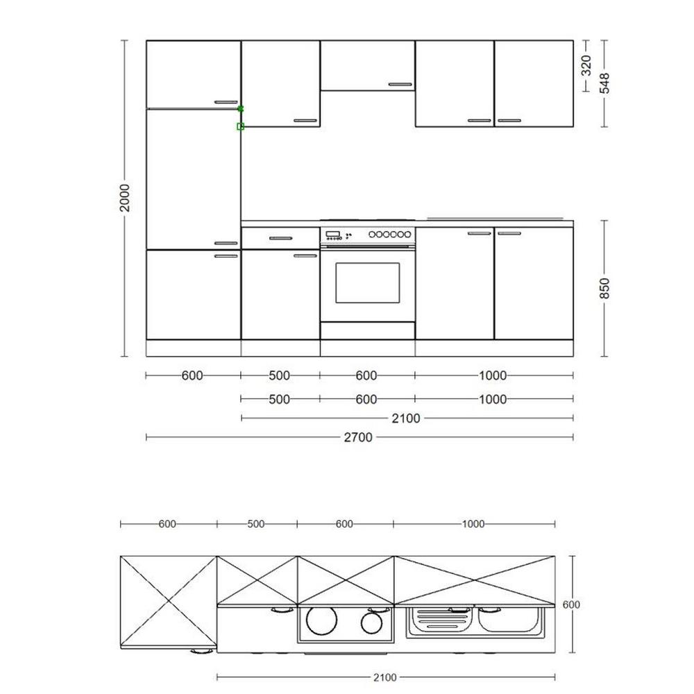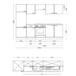 Kuchynský blok, šírka 270 cm bez spotrebičov a drezu