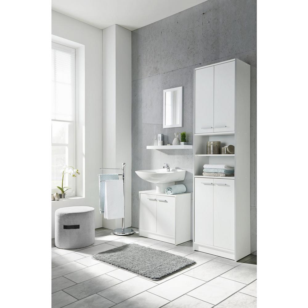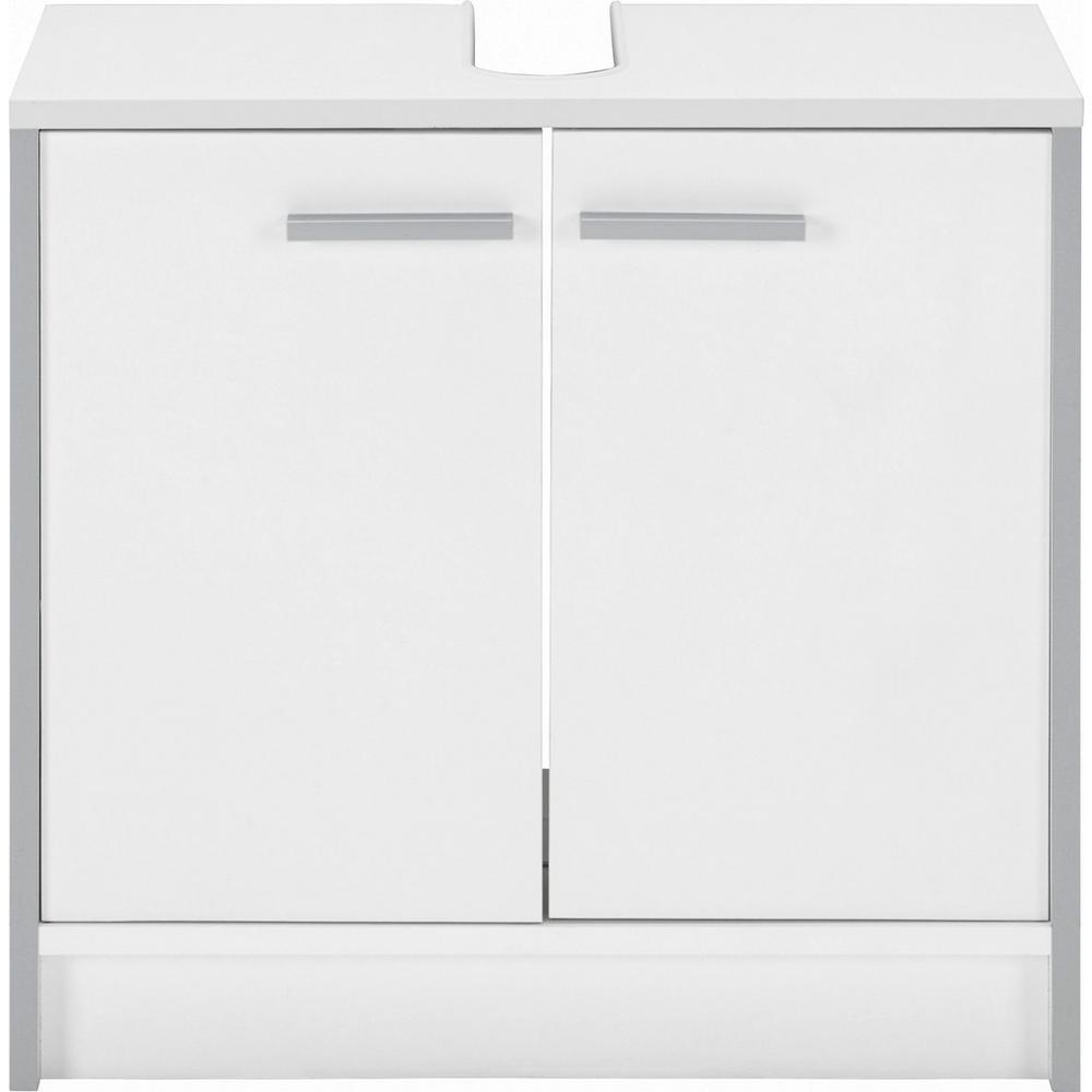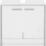 Táto praktická, perleťovo biela skrinka pod umývadlo sa stane praktickým a krásnym doplnkom vo vašej kúpeľni. S rozmermi približne 60 x 56,3 x 29 cm (Š x V x H) je vyrobená z kompozitného dreva. Biely náter šikovne dopĺňajú zvislé hrany a úchyty hliníkovej farby, takže je skrinku možné ľahko kombinovať s rôznymi umývadlami a ostatným zariadením kúpeľne. Za dvomi otočnými dvierkami ponúka užitočný úložný priestor na kozmetiku, čistiace prostriedky alebo uteráky. Doplňte skrinku aj o ostatný kúpeľňový nábytok zo série LUNA II! Dodáva sa bez umývadla a armatúr.